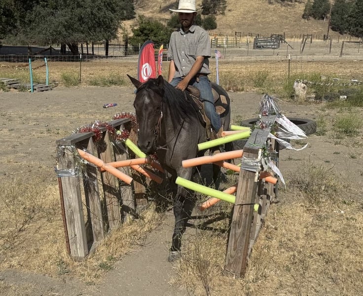ONLINE AUCTION Place your bids at www.PlatinumEquineAuction.com Starting Bid $3500 Auction ends July 6 2025 Need a new saddle? Check out White Rock Saddles on our website or Facebook! Attention all equine enthusiasts! Allow me to introduce Aqua Man, the magnificent 7-year-old blue roan gelding who will capture your heart with just one ride. Standing proud at a height of 15 hands, this experienced gentleman has mastered countless tasks. Whether it’s branding calves or rounding up livestock, sorting, or any other ranch task, Aqua Man has proven himself to be a faithful ranch hand. On top of that, he boasts exceptional training, with a smooth and elegant collected lope, a seamless sliding stop, and a turn that will surely put a smile on your face. His circles are precise and accurate, and his movements are fluid and effortless. To top it all off, he is a gentle and trusty mount, suitable for riders of any skill level. When out on the trail, he fearlessly tackles any terrain, whether it’s narrow paths, deep waters, or logs to climb over. He navigates with grace and confidence, making him an ideal companion for outdoor adventures. He has happily participated in group treks and has no problem riding solo. He is also acclimated to various obstacles, calmly crossing bridges, cowboy curtains, and tires with ease. Aqua Man is a horse that the entire family can adore, excelling in any discipline. We have taken him down bustling streets, and he has been an absolute champ, willing to do whatever is asked of him. He is also a breeze to handle, catch, clip, and bathe, and he stands patiently for the farrier. He is an absolute delight to be around, and he will undoubtedly be the lifelong partner you have been searching for. If you are interested in meeting this incredible horse, please contact Dina at Longhorn Ranch 831-537-1915, located in Paicines, California. Don’t miss out on your dream horse! ONLINE AUCTION Place your bids at www.PlatinumEquineAuction.com Starting Bid $3500 Auction ends July 6 2025 Need a new saddle? Check out White Rock Saddles on our website or Facebook!