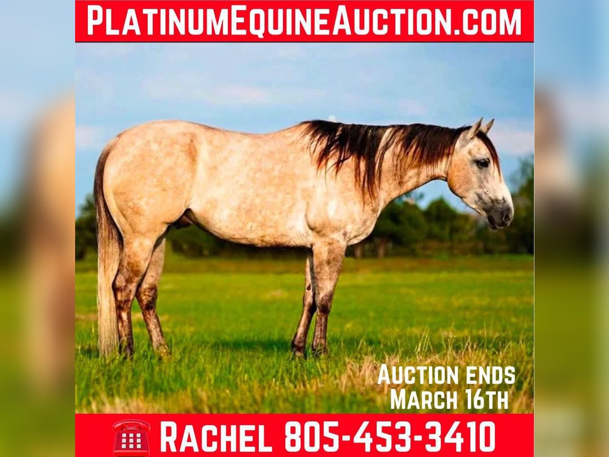ONLINE AUCTION Place your bids at www.PlatinumEquineAuction.com Starting Bid $3500 Auction ends March 16th, 2025 Need a new saddle? Check out White Rock Saddles on our website or Facebook! CP Hollywood Jackpot aka Hollywood is one you do not want to miss! The definition of Gentle and Gorgeous! He stands at 15.1 hands tall has a pretty gray color, long mane and tail make you feel like he’s been pulled right out of a fairytale book. Hollywood makes a statement everywhere he goes! Not only is he stunning, but he checks all the other boxes too! Hollywood is super easy going and wants to always be a good boy, He also has some cool tricks up his sleeve like laying down when asked! Hollywood is the first horse to meet you at the gate to be caught and stands completely still while you put the halter on. He loves any attention he can get. This gelding is everyone’s favorite out here at the barn because he is truly a dream to ride. Hollywood is great out on the ranch, He is naturally cowy and good in the sorting pens and gathering cattle out of big pastures. He ties good, side passes to all the gates and can pull a semi truck if you roped it. Hollywood is a trooper out on the trails and is confident alone, will lead a group, or happily trail behind. He goes where you point him and doesn’t say no. He’s accustomed to lots of wild life, crazy dogs, pigs, camels, buffalo, and cattle. Blowing tarps, loud gunfire, busy traffic, and heavy machinery do not phase him either. Hollywood will literally walk through fire for you! There isn’t anything this gelding can’t handle! This gelding loves baths and loves when all the kids around the ranch groom him & loves eating the cookies right out of their hands. Hollywood has a big personality and is a fun horse to have around the barn. Located in Post Oak Bend City, TX. Call Canyon Creek Ranch Rachel 805-453-3410 with any questions. ONLINE AUCTION Place your bids at www.PlatinumEquineAuction.com Starting Bid $3500 Auction ends March 16th, 2025 Need a new saddle? Check out White Rock Saddles on our website or Facebook!