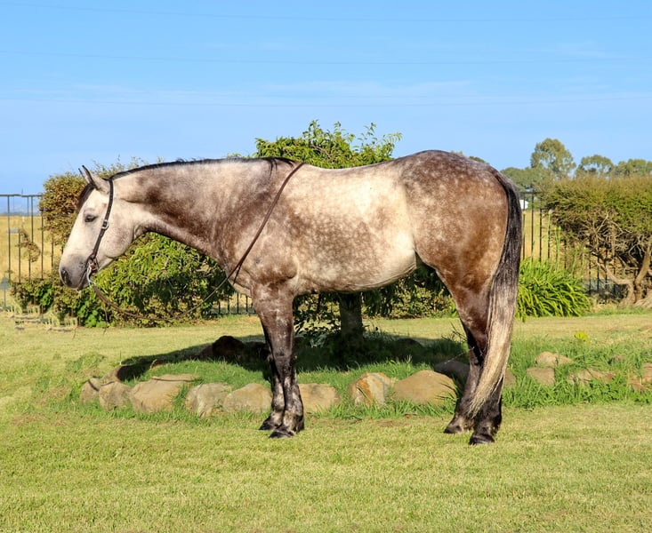 ONLINE-AUKTION Geben Sie Ihre Gebote unter www.PlatinumEquineAuction.com ab. Startgebot $3500 Die Auktion endet am 23. Juni 2024 Brauchen Sie einen neuen Sattel? Schauen Sie sich White Rock Saddles auf unserer Website oder Facebook an! Lernen Sie 2 Pac (alias Paco) kennen, einen 6 Jahre alten 15,1 HH Wallach. Wir stellen Ihnen 2 Pac vor, liebevoll Paco genannt, ein Pferd, das wirklich sein Gewicht in Gold wert ist. Er hat große Knochen und große Füße, keine zierlichen Quarter Horse-Beine. Er ist so dick wie er groß ist. Paco ist nicht nur ein Pferd, er ist ein Liebling im Stall mit einer Persönlichkeit, die so hell leuchtet, wie sein Name vermuten lässt. Mit seinem hündchenhaften Verhalten wird Paco Ihr Herz gewinnen und Ihr bester Freund werden. Paco ist die Verkörperung eines Pferdes mit Herz. Er ist ein sehr anhänglicher Hund, der immer in der Nähe der Menschen sein möchte und sie mit Zuneigung überschüttet. Pacos liebevolle Art wird durch seine albernen Streiche ergänzt, die Sie immer wieder zum Lachen bringen und unterhalten werden. Seine Anwesenheit erhellt den Stall, und er hat die Herzen aller Anwesenden gewonnen. Wir werden ihn sicherlich auf der Ranch vermissen, aber wir wissen, dass er bereit ist, in seinem neuen Zuhause Freude und Gesellschaft zu leisten. Paco ist nicht nur ein Charmeur, er ist auch außergewöhnlich talentiert und gut ausgebildet. In der Arena ist Paco ein Fancy-Break mit Fähigkeiten, die schwer zu übertreffen sind. Er hat einen großartigen Stopp, beeindruckende Spins, fliegende Führungswechsel und die Fähigkeit, seinen Kopf wunderbar zu sammeln. Er kann mit Leichtigkeit Seitengänge ausführen, was seine Vielseitigkeit und sein Training unterstreicht. Paco hat eine Persönlichkeit, die ihn in jeder Situation zuverlässig und vertrauenswürdig macht. Im Gelände ist Paco ein wahrer Gentleman. Er meistert jede Aufgabe mit Leichtigkeit und Anmut, egal ob es darum geht, durch Wasser zu gehen, über Baumstämme zu springen oder durch steinige und schlammige Wege zu navigieren. Paco ist der perfekte Partner für all Ihre Outdoor-Abenteuer, denn er nimmt es mit jedem Gelände auf. Er wurde schon unter den Lichtern der Stadt geritten und ist absolut stadttauglich. Autos, Hupen, Quads, Geländemotorräder, Jogger, freilaufende Hunde, Flugzeuge und Motorroller - Paco hat schon alles gesehen, und es ist ihm völlig egal. Pacos Tapferkeit ist unübertroffen. Um ihn herum wurden Fahnen geschwenkt, Planen flatterten ihm ins Gesicht, und er blieb unbeeindruckt. Wir haben sogar ein paar Mal den Schlitten auf ihm abgeseilt, und er nimmt das alles mit Leichtigkeit hin. Paco ist unser Lieblingspferd für das Einsammeln von Kühen in den Bergen, für Campingausflüge mit Übernachtung, Pokerausritte, Strandausritte und alltägliche Ausritte. Er ist auch ein Star bei Paraden und meistert die Aufregung und das Chaos mit über 50 anderen Pferden wie ein Profi. Ob Paco nun in einer Gruppe oder alleine unterwegs ist, er bleibt ruhig und gelassen. Er kann auch alleine unterwegs sein, ohne sich Sorgen zu machen. Paco ist mehr "woah" als "go" und genießt ein entspanntes Tempo, wenn er durch die Stadt oder die Nachbarschaft cruist. Sein gelassenes Wesen macht ihn zum perfekten Begleiter für Reiter aller Erfahrungsstufen. Paco ist ein einzigartiges Pferd mit einem Herz aus Gold und einer Persönlichkeit, in die Sie sich sofort verlieben werden. Er hat schon alles erlebt und ist bereit, seinen besonderen Charme in ein neues Zuhause zu bringen. Verpassen Sie nicht diese Gelegenheit, ein wahres Juwel von einem Pferd zu besitzen. Paco ist auch UTD auf Schuhe, Wurmkur, Schüsse, chiro. Kontaktieren Sie uns noch heute auf der KW Ranch Kamryn 530-852-2032, um Paco in Pleasant Grove, CA kennenzulernen und sich selbst davon zu überzeugen, warum er ein so beliebtes Mitglied unserer Ranch ist. Er ist bereit, Ihr neuer bester Freund und treuer Begleiter zu werden, bereit für jedes Abenteuer, das Sie sich vorstellen können. ONLINE-AUKTION Geben Sie Ihre Gebote unter www.PlatinumEquineAuction.com ab. Startgebot $3500 Die Auktion endet am 23. Juni 2024. Sie brauchen einen neuen Sattel? Schauen Sie sich White Rock Saddles auf unserer Website oder Facebook an!
