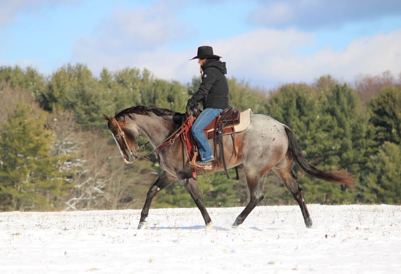 🎄𝐓𝐇𝐄 𝑯𝒐𝒍𝒊𝒅𝒂𝒚 𝐂𝐋𝐀𝐒𝐒𝐈𝐂🎄 Happening now thru MONDAY | DECEMBER 15th - Available EXCLUSIVELY on HorseBid's website! For more details and to register visit: www.Horsebid.com CONSIGNOR CONTACT: Rolling Rock Farms 814-924-3828 LOCATION: Miola PA BREED: Quarter Horse REGISTERED: Yes REGISTERED NAME: CIELOS BLU VAQUERO COLOR: Bay Roan HEIGHT: 15.1 AGE: 7 GENDER: Gelding Sonic is a beautiful bay roan gelding with a presence that always stands out. He has the kind of build, color, and expression that turns heads the moment he walks into view. At 7 years old and standing 15.1 hands tall, he is the ideal size and age for someone wanting a horse that is mature, seasoned, and ready to continue in any direction. In the arena Sonic is very handy and responsive with a naturally soft feel. He carries an easy neck rein and stays collected at both the trot and the lope without needing constant guidance. He catches both leads every time, moves willingly off leg pressure, and lopes smooth, steady, and balanced circles. He also has a big, confident stop that feels effortless. His speed is very adjustable, making him comfortable for riders who want control and smooth transitions. He can pick up or slow down with ease and always stays focused on his rider. On the trails he is just as dependable. Sonic is confident when ridden alone and just as willing in a group, happy to lead or follow. He crosses deep water, brush, and logs without hesitation and handles new terrain with total confidence. He is used to dogs and is traffic safe, giving him a steady and trustworthy attitude whether you are trail riding, checking fence, or simply exploring the ranch. Sonic is just as enjoyable on the ground. He is easy to catch in the pasture and fits naturally in the middle of the pecking order. He gets along well with other horses and does not cause trouble. He stands quietly to be tacked, brushed, or bathed, and he will carry a flag or a tarp with no concern. His sweet, friendly, in your pocket personality makes him a horse you look forward to spending time with every day. He received a complete health and wellness exam on 12/1/2025 and is fully up to date on coggins, recent deworming, and his rabies vaccine. Sonic is sound, healthy, and ready for his next rider to enjoy. If you would like to check out Sonic or have any questions please feel free to contact Ethan at (814) 924-3828