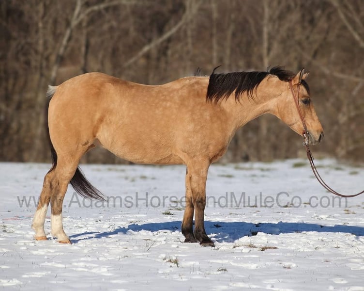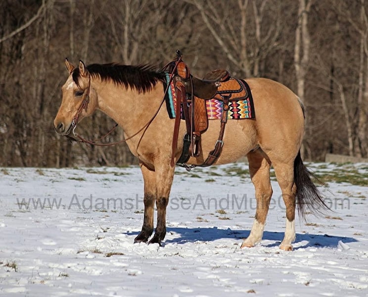 Go to visit our website for more pics and a video. AHAMC has been in the horse business and sold horses over the internet since 2005. We have a long track record of success with hundreds of happy customers. We work hard to match riders with the correct horses and specialize in beginner safe, family friendly horses that have been used and checked out by our family! Willy’s Dusty Zipper is a stout and I mean Stout built 15.2H, 2018 Model registered AQHA, Dappled Buckskin Quarter Horse Gelding. Willy is a well traveled horse that has been ridden in several states and has been used as a ranch horse. From herding to sorting, Willy has done it all! Willy has been trail ridden in several states and been in some high country that is very rough and rocky. He will cross creeks, ditches, logs and navigate rough rocky areas. Willy has a smooth jog and one of the smoothest lopes that you will set on! Willy has been ridden by our kids and is slow and easy with more whoa than go! Willy has been exposed to all kinds of wildlife such as deer or turkey or other animals like cows or dogs and will go anywhere that he is asked too. He has been ridden many miles in the mountains of Eastern Kentucky and encountered every obstacle possible on the trail. He will go up or down even the steepest slopes, across deep creeks, over downed trees, and over all types of rough terrain while still being sure footed. If you want to feel and look like a real deal cowboy/cowgirl just climb on Willy and he will make you look like one with that classic Matt Dillon buckskin color! If you have any questions call Eric 606-308-2461.