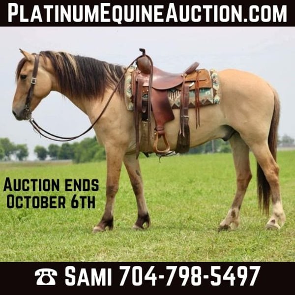 ONLINE AUCTION Place your bids at www.PlatinumEquineAuction.com Starting Bid $3500 Auction ends October 6th, 2024 Need a new saddle? Check out White Rock Saddles on our website or Facebook! Elmer is a unique 15.2 hand Fjord/QH cross gelding. He is 6 years old and as cool as they come! He walks, jogs, and lopes nicely in the arena and outside. He has countless hours of experience on a large cattle ranch in MS. He was the owner’s main mount. He will neck rein, side pass, open and close gaits, and of course do necessary work with the cows from doctoring to loading trucks. You can ride him bridleless, he has a nice handle, and is a joy to have in the barn. He is quiet and gentle and rides the same everyday. He is also excellent on the trails. He crosses natural obstacles with ease including water, bridges, banks, and logs. We have ridden Elmer in town and is traffic safe including motorcycles, scooters, and baby strollers. He loves people walking up and petting him too. He stands well for the farrier and vet. Everywhere we take him, Elmer catches the attention of others for his handsome looks and cool demeanor. Don’t miss out on a great, young gelding like him! Call Sammi Waugh 704-798-5497 Located in Brooksville, KY. ONLINE AUCTION Place your bids at www.PlatinumEquineAuction.com Starting Bid $3500 Auction ends October 6th, 2024 Need a new saddle? Check out White Rock Saddles on our website or Facebook!