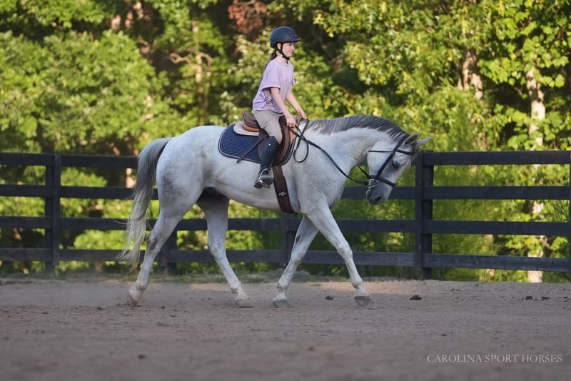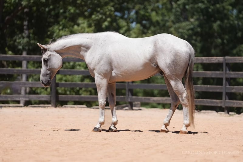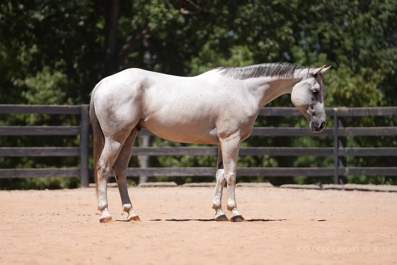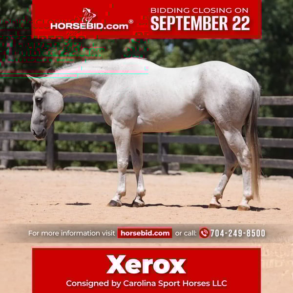 🍁𝒕𝒉𝒆 𝐅𝐀𝐋𝐋 𝑺𝒑𝒆𝒄𝒕𝒂𝒄𝒖𝒍𝒂𝒓🍁 Happening now thru MONDAY | SEPTEMBER 22nd - Available EXCLUSIVELY on HorseBid's website! For more details and to register visit: www.Horsebid.com CONSIGNOR CONTACT: Carolina Sport Horses LLC 704-249-8500 LOCATION: Clover, SC BREED: QH REGISTERED: Yes REGISTERED NAME: Rey’s Dual Tank COLOR: Gray HEIGHT: 15.3 AGE: 7 GENDER: Gelding Xerox is a 7 year old AQHA gelding standing 15.3 hands high. He is a son of great horses like Duel Ray, Xerox Peppy and a long lineage of phenomenal horses. There are some horses that we look forward to riding every day, and Xerox is one of them. He is just so simple, easy, and safe in any and all situations. Xerox is the type of horse that can go from trotting around with the kids, to jumping cross country, to the trails with the husband, all in the same day and do all the jobs well. He has the brain and kind nature for beginners needing a confidence boost, and the talent for the more seasoned rider to enjoy. He brings out the best in every rider, and always leaves you with a smile after you ride. Xerox is a puppy dog on the ground, and as sweet and kind as can be. In the ring, Xerox is easy and fun. He has three comfortable gaits, good brakes, and transitions. He is quiet and easy to get along with. He does lessons weekly with the kids, and is tolerant of nervous, timid, and unbalanced riders. He is starting put together basic dressage tests, and putting together courses in the ring. On the trails and off property, Xerox is brave and honest. He is a blast on the cross country course! He jumps everything you point him at, and will be very easy for an amateur or junior to bring up the levels. On the trails, he rides alone or in a group. The kids take him on hacks around the farm after lessons, and they pop him over the small logs and coupes along the trails. In the barn, Xerox is sweet as can be. He loves people, and is polite and gentle with everyone. He is a good boy to be groomed, bathed, tacked, and clipped, and genuinely enjoys any and all attention. He is the first to the fence in the pasture, and will follow you around like a puppy dog. He lives out 24/7 and gets along well with everyone. He is a good boy when stalled, and has no quirks or vices. Xerox is available to be tried at our farm in Clover, SC by appointment. Appointments to meet and try horses can be made starting anytime after the Full Video is listed on our page. Vet and ship, and sight-unseen sales are welcome at any point once the horse is listed on our site.