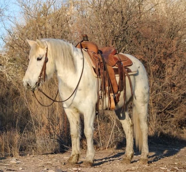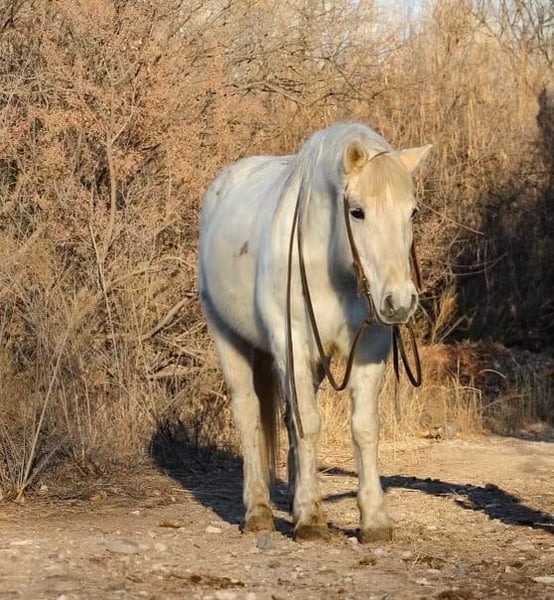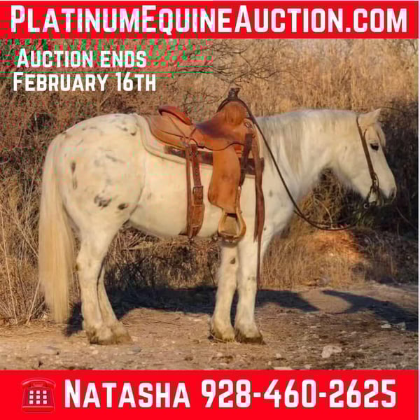 ONLINE AUCTION Place your bids at www.PlatinumEquineAuction.com Starting Bid $3500 Auction ends February 16th, 2025 Need a new saddle? Check out White Rock Saddles on our website or Facebook! Tiny is a 7 year old grade gelding standing 13.3hh, and just as wide as he is tall! This stout made, fun sized gelding is an absolute blast to ride no matter what you ask of him! Tiny will be a smooth ride whether you’re looking to go play around in the arena or embark on your next adventure on the trails!! Tiny has been used as a playday horse and has competed in countless gymkhanas with our younger riders. If you’re not looking to compete in the arena but just want to cruise around, Tiny will be just as eager! He will walk, trot, and lope both ways with ease as well as neck rein and has a good stop. Tiny isn’t just an arena horse, he’s just as great outside!! Rough rocky terrain, steep slippery slopes, flowing water, fallen logs, brushy country, you name it and Tiny will go through it surefooted as can be, without batting an eye!! Tiny is good to groom, saddle, bridle, bathe, load, and trim!! Tiny will come with a clean coggins and health. Transport can easily be arranged anywhere in the US!!! Contact D/C Equine Services Dallas 804-822-2233 Natasha 928-460-2625 Located in Camp Verde, AZ. ONLINE AUCTION Place your bids at www.PlatinumEquineAuction.com Starting Bid $3500 Auction ends February 16th, 2025 Need a new saddle? Check out White Rock Saddles on our website or Facebook!