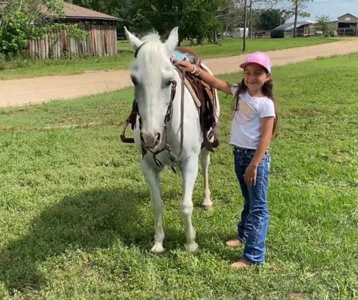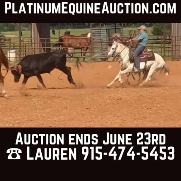 ONLINE AUCTION Place your bids at www.PlatinumEquineAuction.com Starting Bid $3500 Auction ends June 23rd, 2024 Need a new saddle? Check out White Rock Saddles on our website or Facebook! Pegaso is 7 yr old grade pony he stands 12’2 hands tall he’s the coolest pony in our barn. We use him on the ranch from checking on mama cows to checking fence. He’s been doctoring yearlings with the big horses he’s So handy and willing. We’ve been hauling him to the play days for the kidos and to team ropings he’s wiked cool on the heel side. He’s good in the box he has plenty of go to compete and has plenty of try. We love him and we’re very happy he’s been part of our family, any youth rider would absolutely love him as a step up horse and win on him. Pegaso is also a trick pony he lays down and he’s a dancer he loves to jam out and do a little dancing he’s the coolest. He’s once in a life time all around pony he sells 100% sound and gentle. Located in Gainesville TX . Please feel free call for any questions! Lauren Lara 915-474-5453. ONLINE AUCTION Place your bids at www.PlatinumEquineAuction.com Starting Bid $3500 Auction ends June 23rd, 2024 Need a new saddle? Check out White Rock Saddles on our website or Facebook!