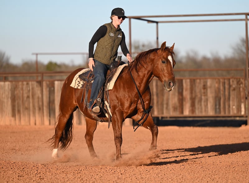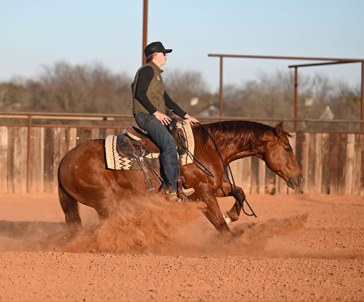 𝐍𝐀𝐓𝐄 𝐁𝐀𝐋𝐋𝐄𝐑𝐈𝐍𝐎 𝐇𝐎𝐑𝐒𝐄 𝐂𝐎'𝐬 ★ ℝ𝕀𝔸𝕋𝔸 𝔹𝕌ℂ𝕂𝕃𝔼 ★ 𝑺𝒉𝒐𝒘𝒄𝒂𝒔𝒆 Happening now thru SATURDAY | FEBRUARY 28th - Available EXCLUSIVELY on HorseBid's website! For more details and to register visit: www.Horsebid.com CONSIGNOR CONTACT: Nate Ballerino Horse Co 254-716-9588 LOCATION: Waco, TX BREED: Quarter Horse REGISTERED: Yes REGISTERED NAME: Cowboy Capital COLOR: Sorrel HEIGHT: 14.2 AGE: 9 GENDER: Gelding If you’re looking for GENTLE, TRUE, TRIED & TRAINED . . . Do yourself a favor and stop scrolling. Cowboy Capitol aka BOYD is a proven NRCHA money earner ($4,742) with an 8th-place finish in the Limited Open at the NRCHA Futurity. Sired by METALLIC CAT, this gelding is loaded with talent, heart, and try. Boyd lead departs - changes - spins and slides whether he’s bridled/saddled or bridleless & bareback. Leave him off for months on end, and step right on him. Boyd has been roped on in the arena & outside extensively on the ranch doctoring sick cattle. We’ve used him dragging calves to the fire, sorting pairs and loading trucks. Boyd will pack any level rider in the branding pen, out on the trail or in the arena. Throw your company on him and let them work the flag on Boyd, he is all around a solid citizen. Boyd is also a finished heel horse that’s been hauled from the jackpots to the World Series ropings. Cinch him in half, hop on, and he’s honest, tried, and ready for kids or anyone you put on him. If you’re looking for one to show in the low level cow horse events, ranch riding or versatility, or cuttings, this gelding will do it all above average and doesn’t need a pilot to win. Contact Nate Ballerino at 254-716-9588 for more info.