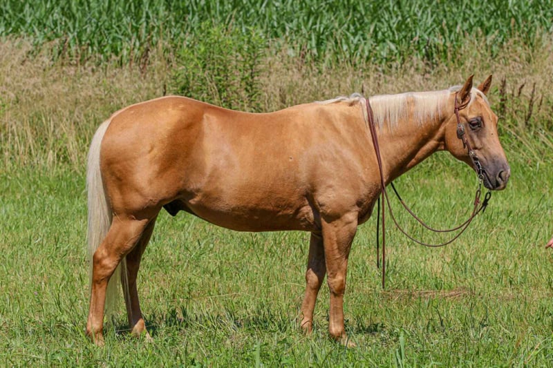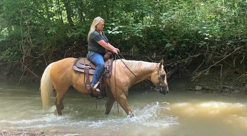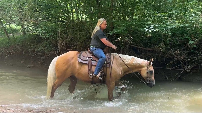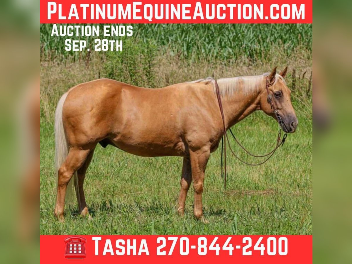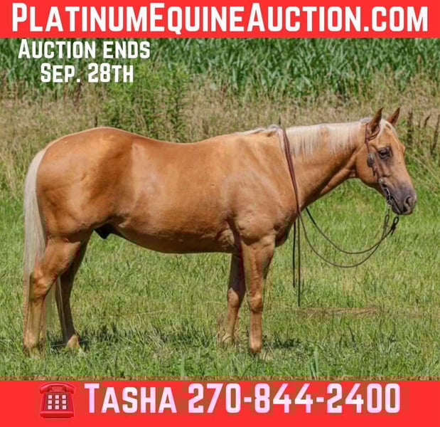 ONLINE AUCTION Place your bids at www.PlatinumEquineAuction.com Starting Bid $3500 Auction ends September 28th, 2025 Need a new saddle? Check out White Rock Saddles on our website or Facebook Meet ASLD DUALIN MARLEY who is a 2017 model, Reg AQHA Gelding also knows as Buddy. Buddy is a gorgeous golden palomino that is standing a stout built, 14.2 hands tall. He has a pure white mane and tail. We call him Buddy because he wants to be your buddy. He has a funny personality and wants all the attention. Buddy is very loving and easy to catch. He will actually catch you as he loves attention! Buddy is royally bred going back to the famous Frenchmans Guy on the top side and Rowdy Blue Man on the bottom! Buddy is out standing on the trails and has been trail ridden through many different types of terrain. He is sure footed and honest. Buddy will cross creeks, go through any body type of water, thick brush, logs, bridges, rough terrain, up and down cliffs with ease and has been through all the obstacles. He is a point and go type of horse. He has been rode on the road and is use to all kinds of traffic, heavy machinery, ATV’s and dog safe. You can ride Buddy out alone with ease or with other horses. Buddy has also been hooked up to a wagon single or double and will go all day. Buddy has also been a Jr rodeo horse doing all the events as well as a grand entry carrying the flag. You can use him on the ranch roping, checking and doctoring cattle. Buddy will stand still for you to get on him from the ground, a mounting block or whatever you find out on the trail. He stands to be groomed, fly spray, stands still to be saddled, bathes good, loads great and stands for the farrier. Buddy is the true definition of an all around horse. He is broke for any level rider. We invite anyone and everyone to come meet and ride Buddy at our barn in Henderson, KY. We are happy to assist with transportation arrangements. For any questions about Buddy please contact Tasha with DNT Horses 270-844-2400. ONLINE AUCTION Place your bids at www.PlatinumEquineAuction.com Starting Bid $3500 Auction ends September 28th, 2025 Need a new saddle? Check out White Rock Saddles on our website or Facebook
