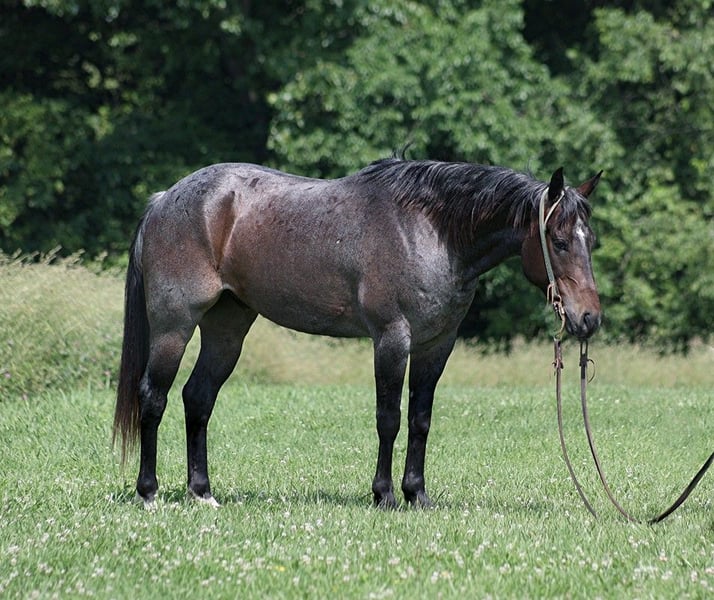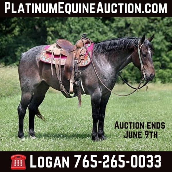 ONLINE AUCTION Place your bids at www.PlatinumEquineAuction.com Starting Bid $3500 Auction ends June 9th, 2024 Need a new saddle? Check out White Rock Saddles on our website or Facebook! Back Wook Hawke is a well built roan gelding standing around 14.2-14.3hh. He is a 2017 Model and he is registered in the AQHA with a good pedigree. Hawk has been used around the ranch and he can handle any job that is asked of him. He is handy enough for sorting, he can go out in the pasture and be roped off of, he can do it all! Hawk is an excellent trail horse and has been ridden in multiple states from South Dakota to Texas to Kentucky. He will cross creeks, ditches, logs and navigate rough rocky areas. He is safe riding in traffic. He has a smooth jog, a very smooth lope, has a good stop, turns a circle both ways and backs with ease! Hawk is a confident horse on the trails and will lead the crew, head out alone with no issues! He has been exposed to all kinds of wildlife such as deer or turkey or other animals like cows or dogs and will go anywhere that he is asked too. He has been rode many miles in the mountains of Eastern Kentucky and encountered every obstacle possible on the trail. He will go up or down even the steepest slopes, across deep creeks, over downed trees, and over all types of rough terrain while still being sure footed. Hawk is not cinchy, cold backed, does not crib or weave. Hawk is a horse that is a pleasure to look at and a pleasure to ride!!! Feel free to call Moore Trained Horses Logan 765-265-0033 with any questions. Located in Level Green, KY. ONLINE AUCTION Place your bids at www.PlatinumEquineAuction.com Starting Bid $3500 Auction ends June 9th, 2024 Need a new saddle? Check out White Rock Saddles on our website or Facebook!
