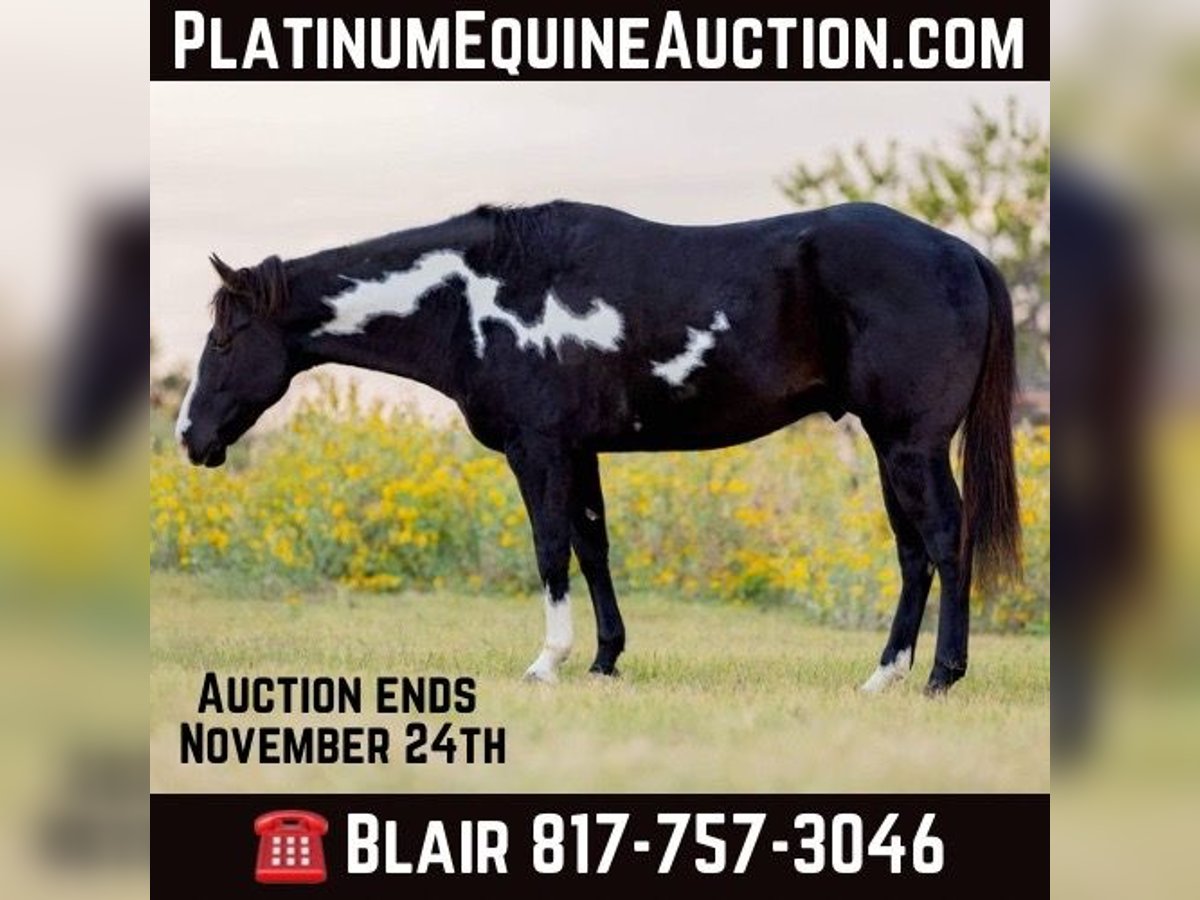 ONLINE AUCTION Place your bids at www.PlatinumEquineAuction.com Starting Bid $3500 Auction ends November 24th, 2024 Need a new saddle? Check out White Rock Saddles on our website or Facebook! Aero is the absolute SWEETEST 14.3H, 7 yr old gelding you’ll ever have the pleasure to know! He’s a GORGEOUS, deep black and white paint with one ice blue eye. He has one of the best, most personable personalities we’ve come across from any breed. Aero is a laid back and “go with the flow” type. He’s spent his most recent days as trail/playday/everyday bareback in a halter fun riding horse for a younger girl. Sports were a priority for her and that’s the only reason he’s available now. He rides absolutely SAFE and gentle. He’s moves off leg, rides one handled or two and is one we’d call more whoa than go. He’s not a dead head or lazy, but he wouldn’t mind just strolling. He is light in the face and stops right when you ask him to! ZERO buck, bolt or rear! He stands absolutely still for mounting and doesn’t move a foot until you ask him to. Aero has also been rode English and he’d be the perfect prospect for someone looking for a versatile mount. He’s calm, cool and collected with all things and has confidence, trusting personality. He bonds with people quickly and absolutely loves attention. The video posted is the first time he’s ever been down to the stockyards and he didn’t blink an eye at any of the loud cars, cranes or animals down there! He was also the center of attention everywhere we went and even stood absolutely still for a news article video!He’s a stunner and absolutely has the best personality to match his looks! Aero loads, leads, bathes and ties great and is current on teeth, feet and coggins! He is ready to go find his new person! Whether you want a safe gentle trail mount, lesson, playday or English prospect, you absolutely won’t be disappointed with this guy! More pics and videos on his website page at northtexashorsecompany.com/aero. Please call Blair with North Texas Horse Company for more info at 817-757-3046. We are located in Weatherford, TX and can help arrange affordable shipping to anyone!! ONLINE AUCTION Place your bids at www.PlatinumEquineAuction.com Starting Bid $3500 Auction ends November 24th, 2024 Need a new saddle? Check out White Rock Saddles on our website or Facebook!