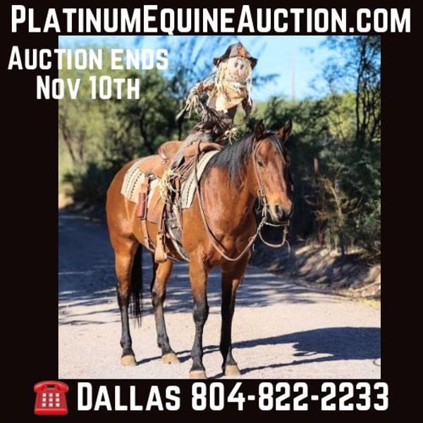 ONLINE AUCTION Place your bids at www.PlatinumEquineAuction.com Starting Bid $3500 Auction ends November 10th, 2024 Need a new saddle? Check out White Rock Saddles on our website or Facebook! Alvin is a grade 7 year old gelding standing 14.3hh. Whether you’re looking for a relaxed gelding to mosey on down the trail or go do a solid days work, Alvin is your guy! This guy has been ranched on all over Arizona and has tons of miles and exposure in lots of different country, and is absolutely surefooted! Take this horse outside and he will cross over, under, and through absolutely anything you point him at. Alvin is never in a rush and is the more Woah than Go type. Transport can easily be arranged anywhere in the US!! Located in Camp Verde, AZ. Contact D/C Equine Services Dallas 804-822-2233. ONLINE AUCTION Place your bids at www.PlatinumEquineAuction.com Starting Bid $3500 Auction ends November 10th, 2024 Need a new saddle? Check out White Rock Saddles on our website or Facebook!
