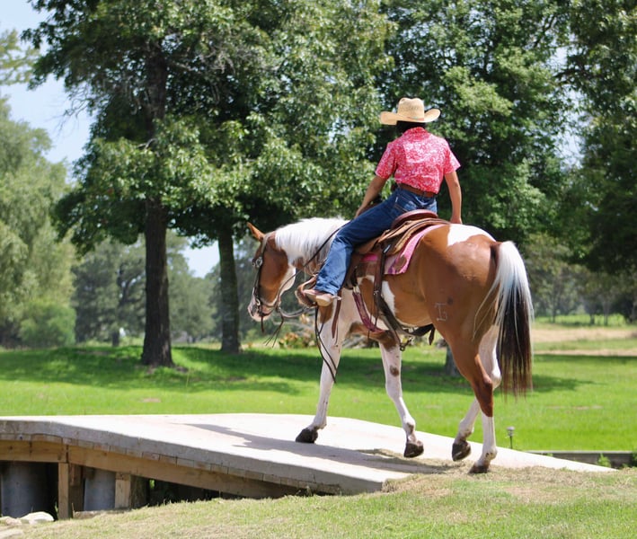 ONLINE AUCTION Place your bids at www.PlatinumEquineAuction.com Starting Bid $3500 Auction ends August 18th, 2024 Need a new saddle? Check out White Rock Saddles on our website or Facebook! Wishbone is a super flashy paint gelding. He is the perfect age of 7 years old. He stands 14.3 hands tall. Wishbone has some very unique markings and he definitely stands out in a crowd! Wishbone is a seasoned trail horse, he’s been used around cattle and tracking the dummy. He also has done many charreadas as a teenage boys mount. He has been ridden all over the place and is traffic safe. He is used to dogs being underfoot. Been around all forms of farm equipment. He is absolutely willing to do whatever is asked of him honestly and tries very hard to please. Wishbone has a wonderful handle to him, he one hand neck reins and has a big stop. He has a beautiful slow lope that you could ride all day! Wishbone is good for baths, the shoer, loading and unloading in the trailer and is extremely easy to catch. He takes a saddle and headstall well. Wishbone is safe and gentle for most any level of rider. He is so much fun to ride and we have really enjoyed him. Please do not hesitate to call or text Alicia Darling 903-840-8010 with any questions. Located in Willis Point, TX. ONLINE AUCTION Place your bids at www.PlatinumEquineAuction.com Starting Bid $3500 Auction ends August 18th, 2024 Need a new saddle? Check out White Rock Saddles on our website or Facebook!