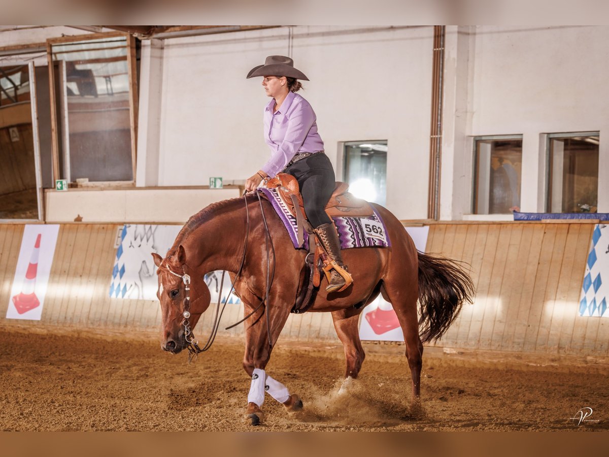 FRQ Best Electric Best Spook x Jaynes Electric Born May 9, 2017 For my beautiful gelding, FRQ Best Electric, I am looking for a suitable new home. “Spucki” has been part of my life since his foal days, so this decision is very difficult for me. It is especially important to me that he finds a person where he truly belongs. He has never been ill, is completely sound, and has a real character with lots of charm. Spucki is solidly trained in reining, but he is not marketed as a reining sporthorse. His strengths and interests lie more in other disciplines. He particularly enjoys pole work. Due to his large frame, I can also very well imagine him in horsemanship, trail riding, or as a versatile leisure partner. He goes calmly both alone and in groups in the terrain. At competitions, he has always been straightforward and relaxed. He also makes a very good impression handling small children, for example in lead-rein classes. Spucki is familiar with both paddock and open stall, is very social, and open to humans. He has been tested with MiM, showing no symptoms. As a precaution, he is fed accordingly and receives a grain- and alfalfa-free diet. In the cold season, he is also blanketed. These measures are purely preventative and have proven very effective. With a fair, confident rider by his side, he is a dream partner. I am specifically looking for the perfect match for him. Therefore, place before price. Price negotiable, €17,500 Further information gladly upon request.