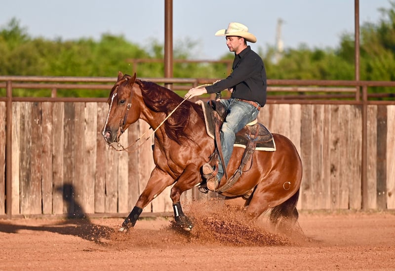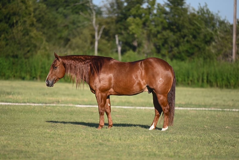 🎄𝐓𝐇𝐄 𝑯𝒐𝒍𝒊𝒅𝒂𝒚 𝐂𝐋𝐀𝐒𝐒𝐈𝐂🎄 Happening now thru MONDAY | DECEMBER 15th - Available EXCLUSIVELY on HorseBid's website! For more details and to register visit: www.Horsebid.com CONSIGNOR CONTACT: Nate Ballerino Horse Co 254-716-9588 LOCATION: Waco, TX BREED: AQHA REGISTERED: Yes REGISTERED NAME: Dealin In Metallic COLOR: Sorrel HEIGHT: 15 AGE: 8 GENDER: Gelding DEALIN IN METALLIC - Tomato is sired by the NCHA hall of fame stallion METALLIC CAT who needs no introduction! Tomato is truly an all around gentleman, he is jaw dropping in every way with impressive athleticism to rival his looks. Finished calf horse, breakaway horse, and by no surprise, will sure enough cut a cow. Tomato is a powerhouse to rope calves on or breakaway. Has been hauled plenty and thrives in every environment. Good in the box, leaves flat, and has a set of air brakes that will win you a check. Knows his job and has all the heart and try you could ask for in whichever discipline you choose! This gelding has a phenomenal handle and calibrates eagerly to his riders ability level with forgiveness. Walks politely on a loose rein, has a steady ground-covering trot, lopes beautiful circles, and a commanding stop. Turns around, side passes, soft lead-departures, a nice change, moves off your leg willingly and has quiet transitions. No stranger to a hard days work; Tomato has also seen his fair share of the outdoors earning his keep on the ranch from checking fences to gathering cattle and anything in between. Crosses water, side passes to open gates, desensitized to dogs, cattle, equipment and commotion. He is accustomed to all terrain and chaos that you can throw at him and takes it all in stride! The same horse every time you saddle him whether it's every day or after a month off. Always happy to see you and truly an enjoyable horse to be around with his charming personality. Please call Nate Ballerino at 254-716-9588 with any questions.