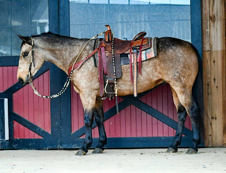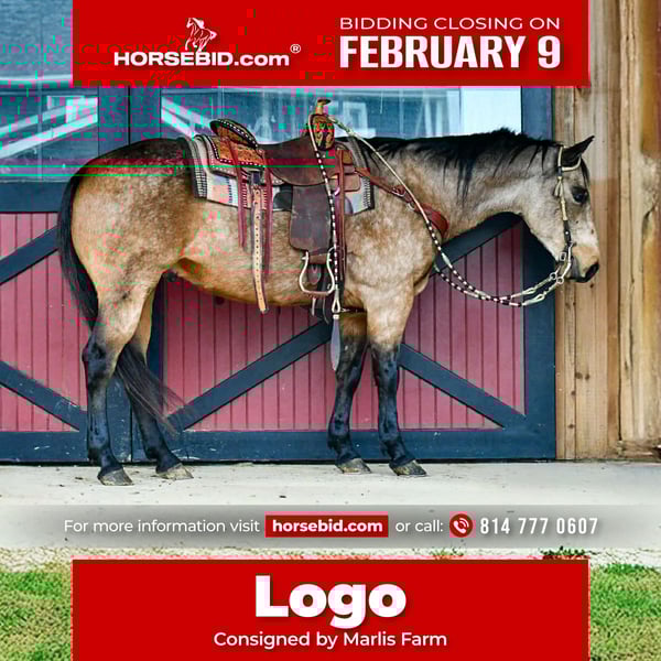 ❤️🔥𝑩𝒆 𝑴𝒊𝒏𝒆 𝐒𝐄𝐋𝐄𝐂𝐓❤️🔥 Happening now thru MONDAY | FEBRUARY 9th - Available EXCLUSIVELY on HorseBid's website! For more details and to register visit: www.Horsebid.com CONSIGNOR CONTACT: Marlis Farm 814 777 0607 LOCATION: Rebersburg, PA BREED: Quarter horse REGISTERED: No REGISTERED NAME: Logo COLOR: Buckskin HEIGHT: 15 AGE: 9 GENDER: Gelding Logo as we call him is a 9yr old 15 hand pretty buckskin quarter horse gelding, he is well broke to ride, he neckreins, sidepasses and is soft in the bridle. Logo is a finished ranch horse and a seasoned trail horse, he goes over logs, through water and wherever you point him. He has been pasture roped off of and we have not found a lot that can spook him. He also rides well in the arena, he picks up both his leads and has a good stop and turn-around. Logo is quiet to be around and loves attention. He is gentle to ride and doesnt easily get excited. We have taken Logo downtown in all the traffic and he takes it like a walk in the park. We have taken him to national parks on day rides. Logo does well inside and turned out in a mixed herd, he loads and unloads, he stands to be tacked and mounted and stands to be washed and for the farrier. He sells sane, safe and sound and ready to move into his forever home. For more information or to come meet him call Mark 814 777 0607 (call only) We can help arrange shipping anywhere!!