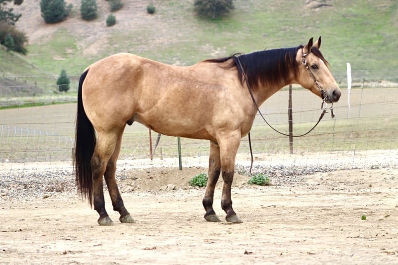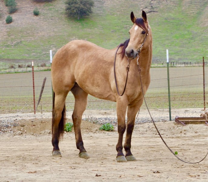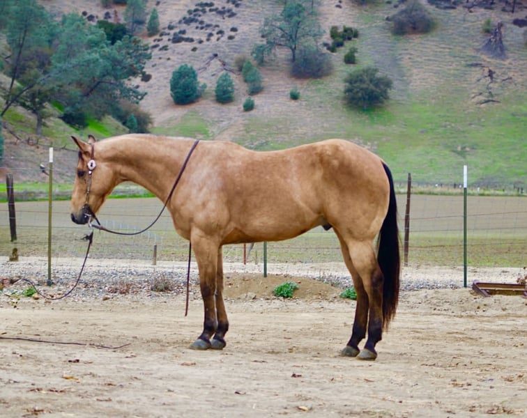 ONLINE AUCTION Place your bids at www.PlatinumEquineAuction.com Starting Bid $3500 Auction ends January 11th, 2025 Need a new saddle? Check out White Rock Saddles on our website or Facebook Start the New Year off right — with a horse that’s comfortable in many roles. He is a stout, good-looking 8- year-old, 15-hand buckskin gelding that comes with a whole toolbox: superior trail horse, handy ranch horse, and started roping the lead steer. He’s the kind you can use all week and still enjoy on the weekend — honest, user-friendly, and easy to get along with. Out on the trail, Aloe is the real deal. He’ll go anywhere you point him — steep hills, brush, rocks, downed trees, and water — and he stays sensible around wildlife and traffic. He’s confident without being pushy, and he takes care of his rider when the terrain gets rough or the world gets loud. In the arena, he’s smooth and comfortable — the kind that makes you want to keep riding “just one more lap.” He’s soft in the face, gives at the poll, moves off your leg, and lopes slow and collected like a rocking chair. He has a nice handle, a solid stop, and backs easily, and he’s the type that stays willing and moldable for different levels of riders. Aloe has also been exposed to a pile of “extras” and takes it in stride — flags, tarps, bouncy balls, obstacles, bridges, tires, pool noodles, and more. Need to drag something? He’s been there. Want a horse that doesn’t make a production out of new stuff? That’s Aloe. He’s also simple in the day-to-day: hauls well, stands tied, clips, and is good for the farrier. He’ll ride out alone or in a group and stays the same steady, usable gelding wherever you point him. If you’re looking for one that’s honest, usable, and versatile — the kind that can be your trail partner, ranch hand, and arena ride all in one — Aloe is the one to start the year with. Contact us to come meet Aloe and get all the details — he’s the kind that’s even better in person, and we’re happy to visit with you and help you decide if he’s the right fit. Nationwide shipping available with our trusted haulers — we can help get Aloe delivered safely to his new home anywhere. Dina — Longhorn Ranch 831-537-1915 Paicines, CA ONLINE AUCTION Place your bids at www.PlatinumEquineAuction.com Starting Bid $3500 Auction ends January 11th, 2025 Need a new saddle? Check out White Rock Saddles on our website or Facebook