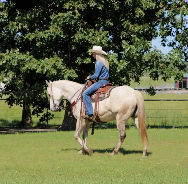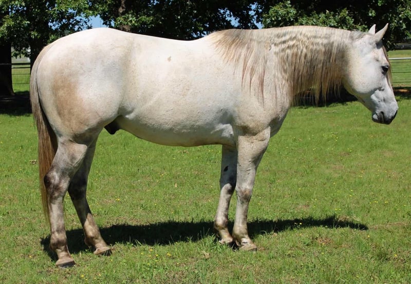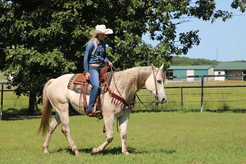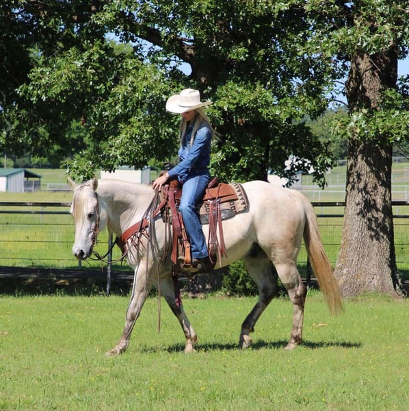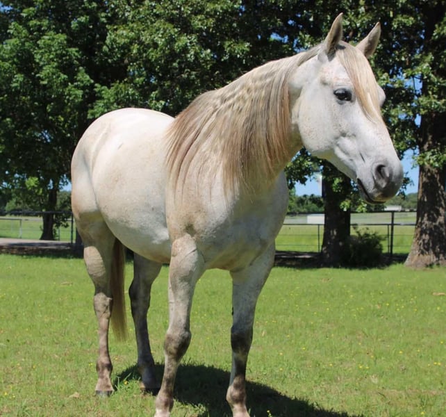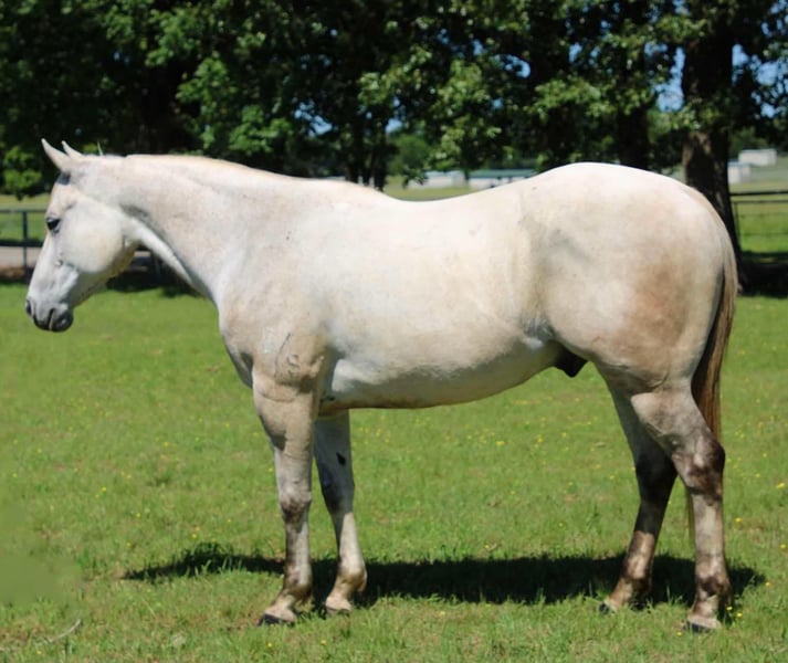 ONLINE AUCTION Place your bids at www.PlatinumEquineAuction.com Starting Bid $3500 Auction ends June 15th, 2025 Need a new saddle? Check out White Rock Saddles on our website or Facebook! Bodee is a 2017 prime aged, AQHA registered, grey, gelding that will stand 15 hands and has tons of bone and substance to last you a lifetime! He is stout, big boned, with solid, sturdy feet! Bodee has experienced a little bit of everything making him well-rounded and versatile. In the arena, Bodee has a smooth walk, trot and lope in perfect circles. Has a great stop, moves off your legs and backs up when asked. He is great on the trails, will cross water, logs, and bridges! Bodee will ride solo, or with a group, not much phases him! Bodee has been used all over the ranch to sort, doctor, load trucks and he has been used the past week dragging calves! He is easy to catch in the pasture, he sees you and he comes running! Bodee is good to saddle, bridle and mount! He stays collected and has a short lope that you can sit all day. Bodee is a nice young gelding that would make an outstanding rope horse, or look great out on the trails! He is a true quality ranch horse, trail horse, show horse, or performance horse. Bodee is 100% sound, straight and correct in every way! Up to date on vaccines, worming, and coggins. We are located in Sallisaw, OK. If you have any questions or concerns, please call Taylor at 918-712-0905. If you have any questions regarding transport, please reach out! I am more than happy to assist you in setting up dependable shipping no matter where you are! ONLINE AUCTION Place your bids at www.PlatinumEquineAuction.com Starting Bid $3500 Auction ends June 15th, 2025 Need a new saddle? Check out White Rock Saddles on our website or Facebook!
