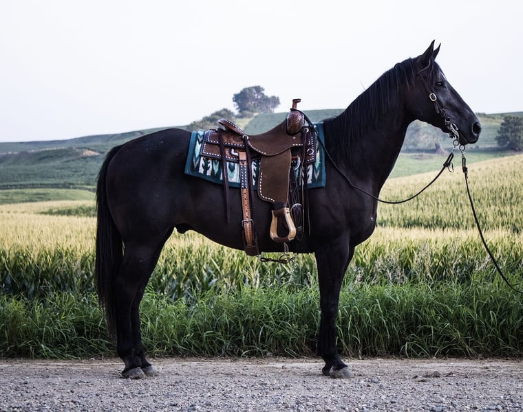 "AVAILABLE ON ONLINE HORSE AUCTION AT www DOT MagicHorseAuction DOT com BIDDING OPEN NOW thru TUESDAY | SEPTEMBER 2ND! - BUY IT NOW AVAILABLE! *Final price will be determined on auction site* CONSIGNOR CONTACT INFO: McKenzie Cramer 330-307-0323 LOCATION: Battle Creek, IA 𝘗𝘩𝘦𝘯𝘰𝘮𝘦𝘯𝘢𝘭 𝘵𝘳𝘢𝘪𝘭 𝘩𝘰𝘳𝘴𝘦 𝘨𝘰𝘦𝘴 𝘸𝘩𝘦𝘳𝘦 𝘺𝘰𝘶 𝘱𝘰𝘪𝘯𝘵 𝘩𝘪𝘮, 𝘯𝘰𝘵 𝘴𝘱𝘰𝘰𝘬𝘺, 𝘴𝘶𝘳𝘦 𝘧𝘰𝘰𝘵𝘦𝘥 𝘢𝘯𝘥 𝘢𝘴 𝘩𝘰𝘯𝘦𝘴𝘵 𝘢𝘴 𝘵𝘩𝘦𝘺 𝘤𝘢𝘯 𝘣𝘦. 𝘏𝘦 𝘸𝘪𝘭𝘭 𝘳𝘪𝘥𝘦 𝘰𝘶𝘵 𝘢𝘭𝘰𝘯𝘦 𝘰𝘳 𝘸𝘪𝘵𝘩 𝘰𝘵𝘩𝘦𝘳 𝘩𝘰𝘳𝘴𝘦𝘴. 𝘏𝘦 𝘪𝘴 𝘵𝘳𝘢𝘧𝘧𝘪𝘤 𝘴𝘢𝘧𝘦 𝘢𝘯𝘥 𝘨𝘰𝘰𝘥 𝘢𝘳𝘰𝘶𝘯𝘥 𝘈𝘛𝘝𝘴, 𝘧𝘢𝘳𝘮 𝘦𝘲𝘶𝘪𝘱𝘮𝘦𝘯𝘵 𝘢𝘯𝘥 𝘥𝘰𝘨𝘴. Jet is a 9 year old gelding that stands 15 hands tall. If you’re looking for a horse to be a best friend he’s your guy! His disposition is exceptional. This gelding is full of love and personality. Jet would be the perfect mount to any family looking for a horse gentle enough for the kids to hop on but big enough to pack dad through the mountains and trails. Jet has been used this summer mainly as a trail horse . He has also been used in 4-H and is patterned on the barrels/poles and other gaming events. He is used to all the noise and action that the rodeo brings! Jet will even carry a flag! He hauls great, settles into new places like he’s been there a dozen times! He eats and drinks on the road and is very easy going. He trail rides perfectly whether you are in the front or back . He crosses water, logs, brush and ditches with confidence and ease. He is sure footed on different terrain as well. He is accustomed to seeing cattle and many different livestock. He lopes nice circles both directions and you can even ride him bridleless. At the barn Jet does all the things one should do; bathe , stand for the vet and farrier. He can be kept in a stall or turned out with other horses Either way he does not cause any problems. He comes to you when it’s time to be caught . Jet is one of those geldings that it does not matter if you ride once a week or a year he will be the same every time you climb in the saddle and there is no need for tuning, lunging or funny business!