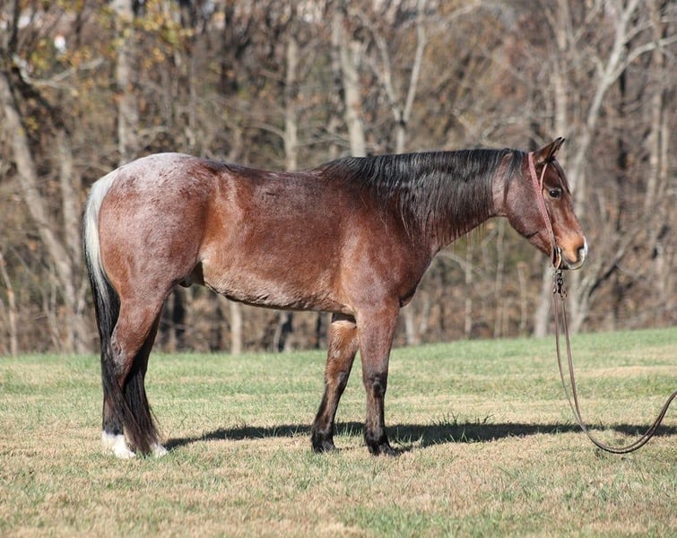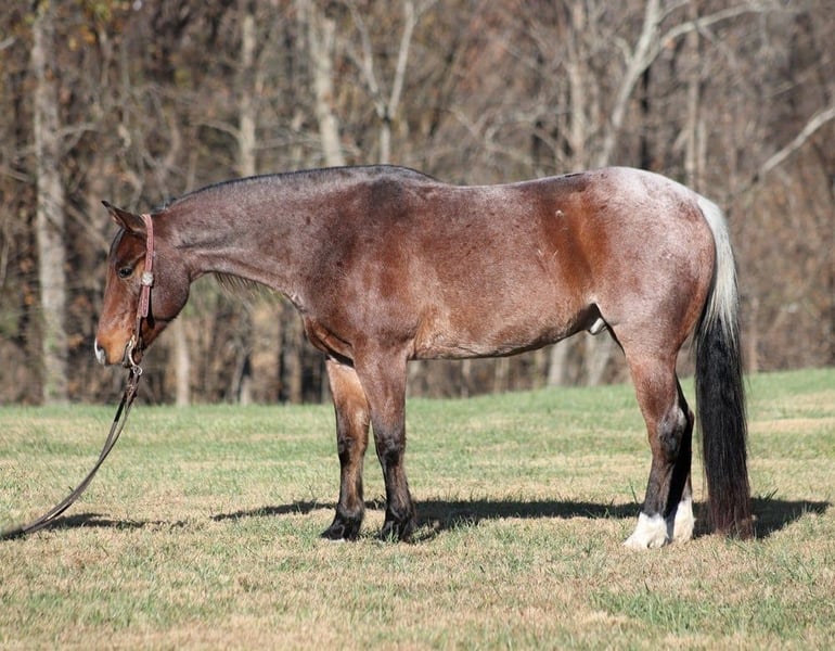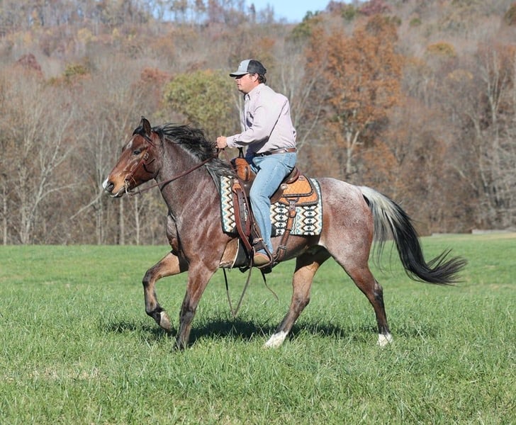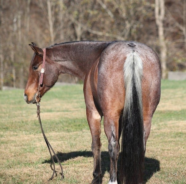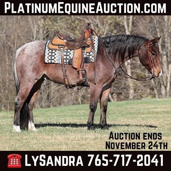 ONLINE AUCTION Place your bids at www.PlatinumEquineAuction.com Starting Bid $3500 Auction ends November 24th, 2024 Need a new saddle? Check out White Rock Saddles on our website or Facebook! Cats Mackeroany is a 7-year-old, 15H, Bay Roan Gelding with a snip rear socks and a “skunk tail”. He is registered AQHA and has an old scshool pedigree that you don’t see on younger horses anymore being a grandson of Doc Olena on the top and going back to him on the bottom. Cat is a true ranch horse and if you’ve got a job to do and want a horse that will help you do it right, the work will be easy with guy! Cat will go anywhere that you point him whether that is steep slopes, over deadfall, across rivers or rough terrain, he handles it with ease! He is a seasoned ranch horse that has been used at brandings, he has pasture roped, has been out of the box on the head side, he has loaded trucks and done team sortings. I had him in Ohio last week catching 25 wild longhorns. No matter what happens Cat is there to help you and he will put you in the place that you need to be in order to get a rope on one. Cat lopes nice circles, he is truly one hand broke, he spins around both ways, slide stops, backs and sidepasses. He requires no maintenance and stays sound even with hard work. For more info contact Lucky 13 Equine Lysandra 765-717-2041 or Matt 765-698-4655 Located in Brodhead, KY. ONLINE AUCTION Place your bids at www.PlatinumEquineAuction.com Starting Bid $3500 Auction ends November 24th, 2024 Need a new saddle? Check out White Rock Saddles on our website or Facebook!