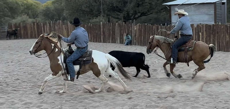 ONLINE-AUKTION Geben Sie Ihre Gebote unter www.PlatinumEquineAuction.com ab. Startgebot $3500 Die Auktion endet am 17. November 2024 Brauchen Sie einen neuen Sattel? Schauen Sie sich White Rock Saddles auf unserer Website oder Facebook an! Dicey ist ein 7-jähriger Paint-Wallach mit einer Größe von 15h. Dieser Wallach ist eine absolute Freude zu reiten, egal welche Aufgabe Sie ihm geben! Machen Sie einen Spaziergang durch die Stadt, schlängeln Sie sich auf dem Trail, machen Sie einen soliden Tag Arbeit rund um die Ranch, oder drehen Sie ein paar Ochsen im Roping Pen! Was auch immer Sie wollen, Dicey wird es tun! Wir haben mit diesem prächtigen Wallach alles gemacht, was man auf einer Ranch machen kann, und wir haben alle Reitertypen auf seinem Rücken gehabt. Dicey ist nicht nur draußen unbehelligt und handlich, sondern auch auf dem Reitplatz ein Vergnügen! Er geht im Schritt, Trab und Lope in beide Richtungen und hat einen schönen weichen Gang. Er lässt sich gut am Hals zügeln, hat einen guten Stopp und ist ein absoluter Spaß am Seil! Dicey ist nicht nur handlich, sondern auch ein absolutes Vergnügen, mit ihm zusammen zu sein. Er ist leicht einzufangen, gut zu striegeln, zu satteln, zu baden und zu beschlagen! Wenn Sie auf der Suche nach einem großartigen Allround-Wallach sind, ist Dicey Ihr Mann! Der Transport kann leicht überall in den USA arrangiert werden! Befindet sich in Camp Verde, AZ Kontakt D/C Equine Services Dallas 804-322-2233. ONLINE-AUKTION Geben Sie Ihre Gebote unter www.PlatinumEquineAuction.com ab. Startgebot $3500 Die Auktion endet am 17. November 2024 Brauchen Sie einen neuen Sattel? Schauen Sie sich White Rock Saddles auf unserer Website oder Facebook an!