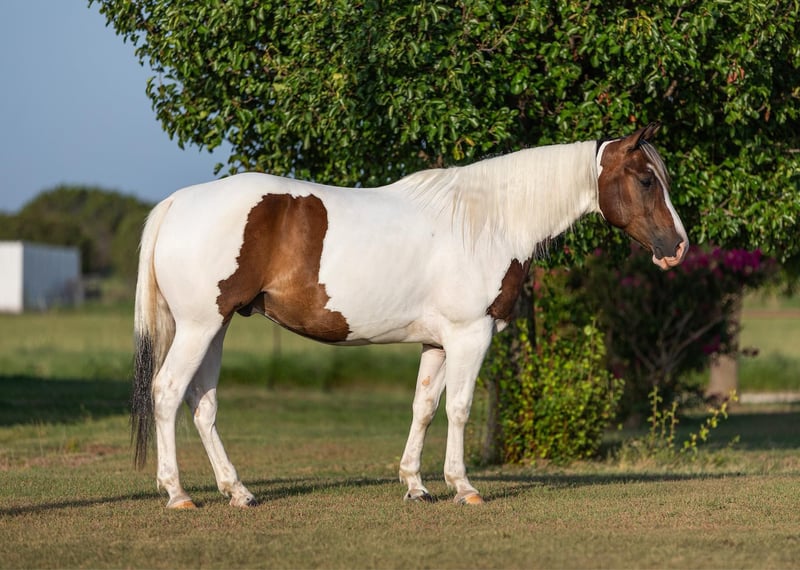 ONLINE-AUKTION Bieten Sie jetzt auf www.PlatinumEquineAuction.com Startgebot: 3.500 USD Auktionsende: 6. Oktober 2024 Benötigen Sie ein neues Sattel? Schauen Sie auf unserer Website oder Facebook-Seite bei White Rock Saddles vorbei! „Scout“ oder EKPD Sand Peppy Doc ist ein im Jahr 2017 registrierter Paint-Gelding mit einer Stockmaß von 1,65 m (16.1 hh). Scout ist ein freundlicher und sanfter Wallach, der bereit ist, den ganzen Tag zu arbeiten. Er wurde bereits auf Barrel- und Polopatterns eingeritten. Ich habe ihn bei mehreren Gymkhana-Veranstaltungen mitgenommen, und er hat sich als ziemlich routiniert bei neuen Orten erwiesen. Er ist ruhig, gelassen und souverän im Warmblut, egal mit wem ich reite. Er hat viel Energie und ist ein großartiges Einsatzpferd. Scout geht durch jedes Hindernis, das man ihm in den Weg stellt, sei es Fahnen, Banner, Planen, Wasser, Rasenbewässerungsanlagen oder Springbrunnen – er ist immer bereit, das zu tun, was man von ihm verlangt. Ich habe Scout zum Rinderfangen, Zäune kontrollieren, Fohlen anreiten, auf Trails reiten und er war dabei stets ein großartiger Begleiter. Er reitet sowohl in der Arena als auch draußen, alleine oder in der Gruppe. Ich nehme ihn oft barfuß und im Hackamore mit, um Zäune zu kontrollieren – dabei haben wir beide die beste Zeit! Er geht Schritt, Trab und Longe sehr leicht auf beide Führungen, sowohl mit Halsreins als auch mit direkter Reining. Scout reagiert hervorragend auf Beintritte, kann in beide Richtungen wenden und seitwärts links und rechts passagen – das Öffnen und Schließen von Toren ist mit ihm ein Kinderspiel. Scout ist bereit als Einsatzpferd oder könnte zu einem der schönsten Pferde in der Arena für Gymkhanas, Ranch-Rodeos und Roping-Veranstaltungen ausgebildet werden. Er hat eine bezaubernde Wallach-Persönlichkeit und ausgezeichnete Bodenmanieren. Er kann im Stall oder am Anhänger angebunden werden, um gepflegt, umgesattelt und gebadet zu werden. Er springt problemlos in den Anhänger und fährt sehr fein rückwärts aus. Scout kann allein auf der Weide gehalten werden oder mit anderen Pferden, auch im Stall fühlt er sich wohl. Kürzlich wurde er vom Tierarzt, Hufschmied, Zahnarzt und Chiropraktiker untersucht und war bei allen ein vorbildlicher Patient. Scout ist ein hervorragendes Pferd, das stets bereit ist, zu arbeiten und vom Reiter in die nächste Richtung gelenkt zu werden. Für weitere Informationen oder Fragen wenden Sie sich bitte an Sydney bei SRS Training and Sales unter (518) 935-8282. Scout befindet sich in Granbury, Texas. Wenn Sie Scout lieben und nicht in der Nähe wohnen, helfe ich gerne bei der Organisation eines schnellen und günstigen Transports quer durch die USA. ONLINE-AUKTION Bieten Sie jetzt auf www.PlatinumEquineAuction.com Startgebot: 3.500 USD Auktionsende: 6. Oktober 2024 Benötigen Sie ein neues Sattel? Schauen Sie auf unserer Website oder Facebook-Seite bei White Rock Saddles vorbei!