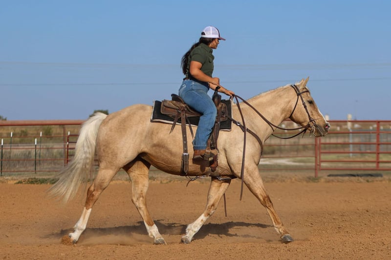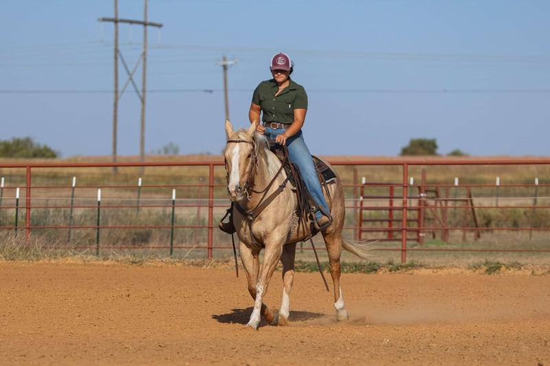 ONLINE AUCTION Place your bids at www.PlatinumEquineAuction.com Starting Bid $3500 Auction ends November 10th, 2024 Need a new saddle? Check out White Rock Saddles on our website or Facebook! Sun Frosted Feature aka “Frosty” is a registered 7 year old Appendix AQHA mare. She is a gorgeous palomino with slight dapples shining through her coat and lots of chrome on her legs and face. She stands at 15.1H and is nice and stout. This pretty mare has a big lovable personality that is so easy to get along with. She is constantly looking for attention, she’s the first one to meet you at the gate and will even give you the occasional nicker. With a big motor and more go than whoa she’s eager to work and could excel in a variety of disciplines. Frosty has been started on barrels and poles with potential to improve with the right person. She walk, trot, lopes on a fairly loose rein and can be ridden with one hand or two. She listens nicely to leg and seat pressure and is always willing to please. Frosty often looks to her rider for confidence in situations she might not be familiar with and tries her best to please you. She is a very big and strong mare making her an excellent competitive partner, fun trail mount, or even a great rideable broodmare. After all, she is a granddaughter of “Sun Frost” and excellent and sought after sire. Frosty has recently been seen by my vet, farrier, dentist, and chiropractor. She hops on the trailer with ease and backs off very nicely. Frosty can be outside in a pasture alone or with other horses, she also does well in a stall. Frosty has been a very easy keeper at my facility and has been an absolute joy to have around. For any questions about Frosty please call Sydney with SRS Training and Sales at 518-935-8282. Frosty is located in Granbury, TX. If you’re not local I will be happy to help arrange shipping anywhere in the US from Granbury, TX. ONLINE AUCTION Place your bids at www.PlatinumEquineAuction.com Starting Bid $3500 Auction ends November 10th, 2024 Need a new saddle? Check out White Rock Saddles on our website or Facebook!