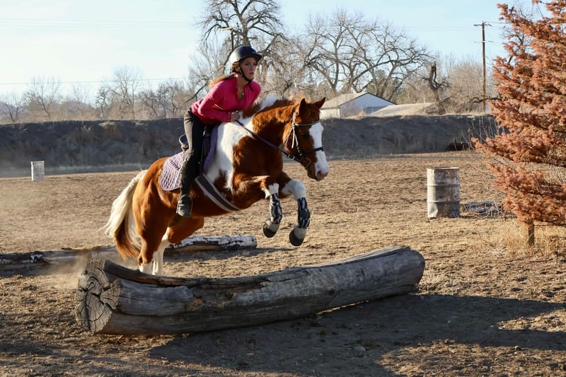 ONLINE AUCTION Place your bids at www.PlatinumEquineAuction.com Starting Bid $3500 Auction ends March 16th, 2025 Need a new saddle? Check out White Rock Saddles on our website or Facebook! Ringo is an 8 year old 15.1 hand absolutely stunning paint gelding with a heart as big as his coloring!! Ringo is easy to handle in all aspects, very respectful on the ground and in saddle, gets along with other horses and is first to meet you at the gate! Ringo stands for the vet and farrier, self loads and backs out, stands tied and is all around an easy going guy. Ringo has had a rope thrown off of him, been trail ridden extensively in town and around lots of commotion as well as up in the mountains with steep and rugged terrain, he’s been started in the western pleasure world and has an extremely lofty trot and lope and is an absolutely stunning mover with a sliding stop and gorgeous transitions! Ringo is also started English and over fences and he has a ton of scope and athleticism, Ringo does not miss a beat. Ringo would excel in the cross country or hunter jumper world! He can be as quick and as athletic as asked for but will also drop his head and be as slow as you want as soon as needed as well. This guy is young, athletic, smart and has dabbled in just about anything you could think of! Check out his video and come meet this sweet (and stunning) boy. Located in Fort Collins, CO. Contact Dynamite Horses Thea 970-632-3644 with any questions. ONLINE AUCTION Place your bids at www.PlatinumEquineAuction.com Starting Bid $3500 Auction ends March 16th, 2025 Need a new saddle? Check out White Rock Saddles on our website or Facebook!