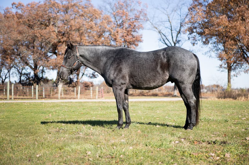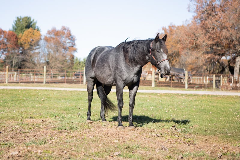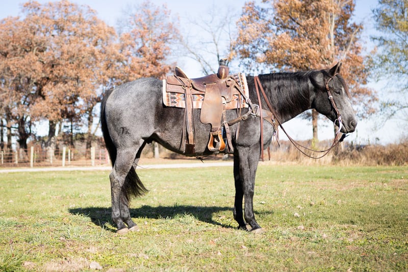 Ajax, hongre AQHA de 9 ans, mesurant 15,3 mains, de robe bleu-roan