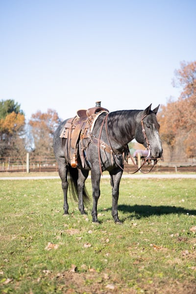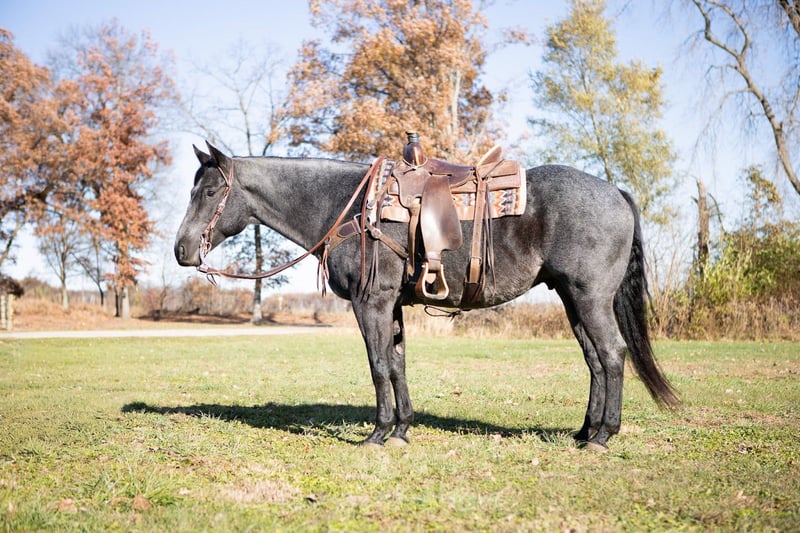 Ajax, hongre AQHA de 9 ans, 15,3 mains, couleur bleu-roan