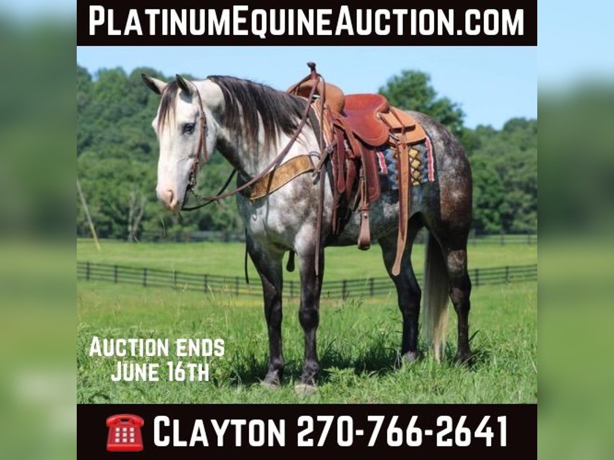 ONLINE AUCTION Place your bids at www.PlatinumEquineAuction.com Starting Bid $3500 Auction ends June 16th, 2024 Need a new saddle? Check out White Rock Saddles on our website or Facebook! Ghost is a 7 year old dapple grey quarter horse gelding! He stands 14.3 hands tall and has the look everyone wants! Ghost has been exposed to about everything you can imagine! He is a very laid back and relaxed horse even in challenging situations! He has been trail ridden tons of miles around mammoth cave national park and will go through water, over logs, and loves to climb hills! He has been ridden by many different levels of riders from experienced all the way to beginners and handles his riders the very best no matter the situation! He has a very nice slow lope, will neck rein, and will back up! He takes his leads in an arena as well as out in the open! He will come over to the mounting block and stand like a statue for mounting! Here is a gelding that will make you a perfect family type horse! He is very easy to catch and handle! If you’re looking for a horse with good size, color, and brains here he is! Don’t miss out on this opportunity! Please CALL Sammy Detweiler 270-218-1073 He is located in Priceville Ky! ONLINE AUCTION Place your bids at www.PlatinumEquineAuction.com Starting Bid $3500 Auction ends June 16th, 2024 Need a new saddle? Check out White Rock Saddles on our website or Facebook!