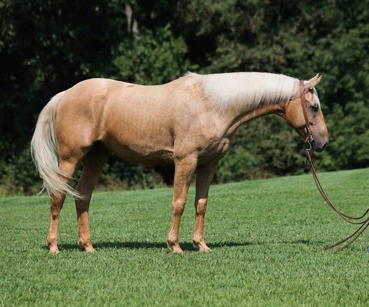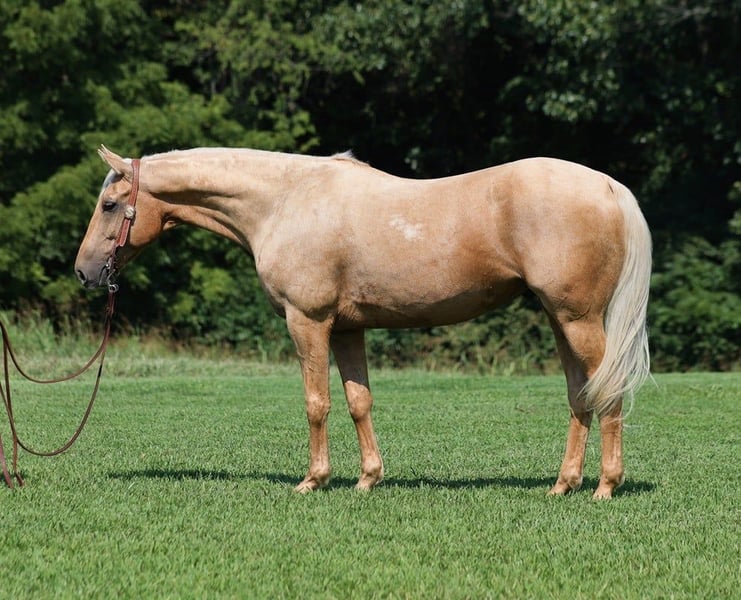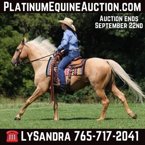 ONLINE AUCTION Place your bids at www.PlatinumEquineAuction.com Starting Bid $3500 Auction ends September 22nd, 2024 Need a new saddle? Check out White Rock Saddles on our website or Facebook! A Zans Olen Jack is a stout built Golden Palomino Gelding. He is standing 15.1hh and he is a 2017 Model Registered AQHA Gelding. He is well bred going back to Zan Parr Bar and is a rare find with Two Eyed Jack still listed on his pedigree. Zan is a do it all kind of horse! He can go out and hit the trails and just cruise along slow and easy. He rides with his head low and will keep a loose/draped rein. He has been exposed to all kinds of wildlife. He will go up or down steep slopes, across deep creeks, over downed trees, and over all types of rough terrain while still being sure footed. He has been ridden through town and is safe in traffic is not spooky. He has been started on the roping dummy and is doing a good job tracking it. He knows his way around the ranch and has plenty of cow sense. He has a smooth jog, a VERY VERY nice easy to set lope, a good stop, turns a circle both ways and backs with ease! Zan is an excellent horse for anything from trail to ranch work and is pleasure to be around! We are located in Brodhead, KY. Feel free to call Lucky 13 Equine Lysandra 765-717-2041 with any questions. ONLINE AUCTION Place your bids at www.PlatinumEquineAuction.com Starting Bid $3500 Auction ends September 22nd, 2024 Need a new saddle? Check out White Rock Saddles on our website or Facebook!