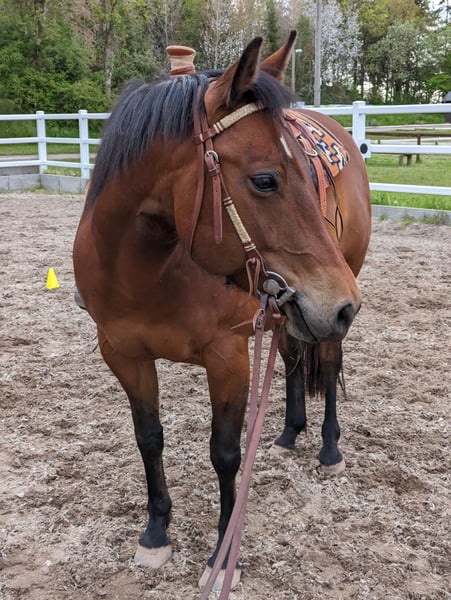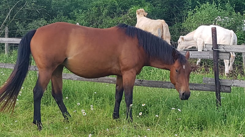 Ich suche aus absolutem Zeitmangel für mein Herzenspferd ein 5 Sterne Zuhause. Sie war noch nie krank, ist korrekt gebaut und hat ein gutes Papier, weshalb ich mir sie auch zur Zucht sehr gut vorstellen kann. Sie ist kräftig gebaut, sehr sozial in der Herde und auch zu anderen Hoftieren einfach nur lieb. Ich bin sie seit 1,5 Jahren aus Zeitmangel nicht geritten und man merkt ihr mittlerweile an, dass sie sich nach Beschäftigung sehnt. Sie ist, auch aufgrund ihres aktuellen Trainingszustandes, kein Anfängerpferd, da sie sich sich sehr an ihrem Menschen orientiert und bei entsprechender Führung auch ohne zu fragen überall mit ihm hin geht. Sie ist nie schlecht gelaunt und sehr menschenbezogen. Wer nochmal etwas Arbeit investiert, bekommt ein feines, unkompliziertes Pferd mit traumhaftem Charakter. Ich gebe sie nur an Bestplatz ab, Sie könnte auch bei mir stehen bleiben.
