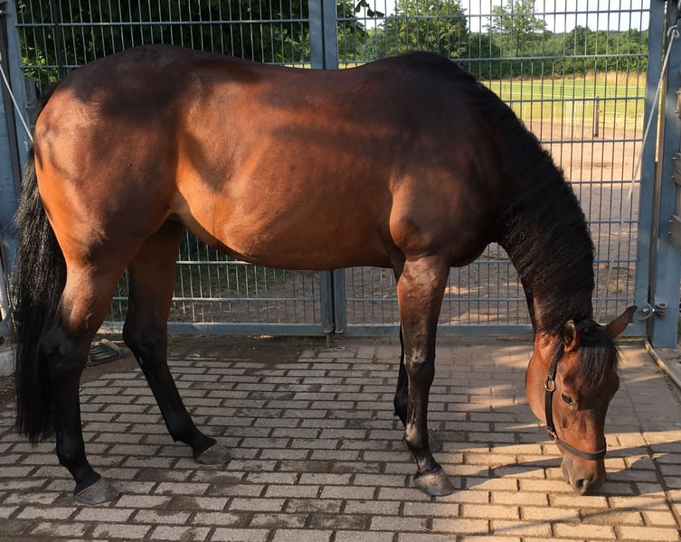 Jeanie , 10-jährige , bay-farbene Stute sucht neues Zuhause mit neuem Einsatzbereich , geb. Mai 2016 , Stockmaß ca. 1,54 m , aufgewachsen in einer kleiner Quarter-Herde , mit 3 Jahren zunächst Boden- und Freiarbeit , mit 3 1/2 dann 7 Monate professionellen Beritt ( Reining ) , danach nur freizeitmäßig geritten, kein Turniersport , viel und sicher im Gelände , AQHA Papier mit „Hollywood Jac“ und „Topsail Whiz“ im Pedigree , Offenstall und Box gewöhnt , sicher und zuverlässig im täglichen Handling , Hufpflege - Hängerfahrten - putzen - waschen - etc. : alles problemlos , seit September im professionellen Aufbautraining mit Reining- Lektionen , Diese coole - unverbrauchte - leichtrittige Stute braucht einen neuen Einsatz- und Aufgabenbereich . weitere Infos unter : 0170-4701917 Videos auf Anfrage