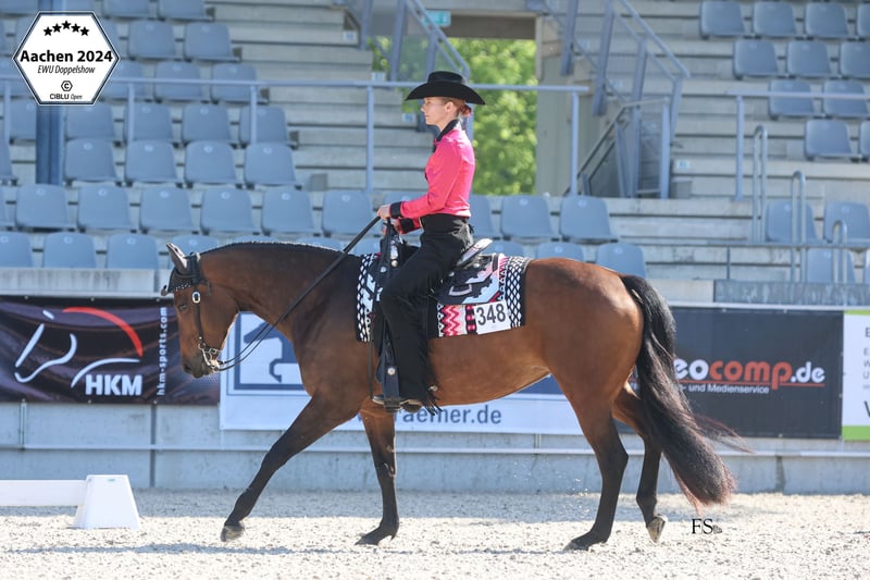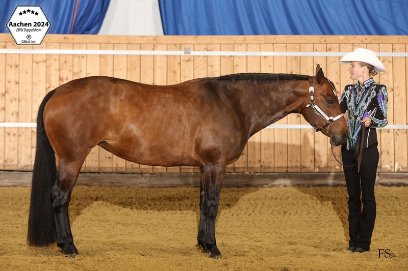 Zum Verkauf steht unsere Stute "GiveMeAllYourLuvin". Balis Pedigree lässt keine Wünsche offen. Ihr Vater "RL Best of Sudden" ist der All-Time AQHA und NSBA Leading Sire of Money Earned and Points Awarded in Western All Around Events. Ihre Mutter "Open Your Invitation" ist DQHA Leading Dam und hat viele erfolgreiche Nachkommen. Bali wurde 2016 bei David Maisonette in Frankreich geboren. Bali wurde 2- und 3-jährig erfolgreich in den In-Hand-Klassen geshowt. Sie wurde 2jährig Vize-Europameister in der Open und Amateur Halter sowie Q18 Futurity Reserve Champion in der Longe Line. 3jährig wurde sie Young Horse Cup Champion (Gesamtsiegerin der Showmanship, Trail in Hand und Longe Line) auf der EM und wurde auf der West Futurity Siegerin und Grand Champion Mare der Amateur und Open Halter, sowie Futurity Champion 3yo Mares und Longe Line. Ab 4jährig setzte Bali ihre sportliche Karriere unter dem Sattel fort. Sie wurde erfolgreich bei der EWU und AQHA/DQHA in verschiedenen Disziplinen geshowt: Trail, Showmanship, Pleasure, Horsemanship, Hunter, Hunt Seat, Ranch Riding und Halter. Neben vielen Platzierungen und Siegen, wurde sie AQHA All-Around Champion Amateur und Open, EWU Finalist in der Junior Pleasure und im Senior Trail, Bestes Jungpferd 6j Trail auf der Rheinlandmeisterschaft und qualifizierte sich zuverlässig für die German Open in der Pleasure, Trail, Showmanship und Horsemanship. Hervorzuheben ist, dass sie nicht nur von Profis und Amateuren geshowt wurde, sondern auch schon mit einer Jugendlichen erfolgreich lief und auch für die Führzügelklassen eine zuverlässige Partnerin war. Abseits der Turnierplätze hat Bali aber auch sehr viel Spaß an einem abwechslungsreichen Training: Ausritte, Cavaletti- und Dressurstunden, Horseagility, Bodenarbeit und Kursbesuche - sie macht einfach alles mit. Bali steht ganzjährig über Tag mit der Stutenherde auf der Wiese und nachts in der Box. Aktuell läuft sie barhuf, ist gegen Tetanus, Influenza, Herpes und West-Nil geimpft, die Zähne wurde kürzlich gemacht und sie wurde immer 3x jährlich entwurmt. Bei Interesse können Videos verschickt werden.