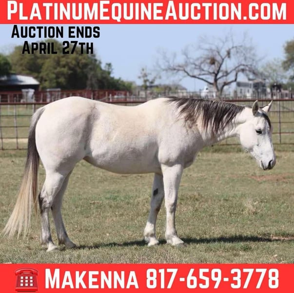 ONLINE AUCTION Place your bids at www.PlatinumEquineAuction.com Starting Bid $3500 Auction ends April 27th, 2025 Need a new saddle? Check out White Rock Saddles on our website or Facebook! How about this gorgeous gal? Stoney is started on the heel side, great trail horse, and just an all around fun mare to have in the barn! She is just 10 years old, registered and 14.3hh tall! Stoney is very handy broke, has a nice turn around, big stop and super light in the face! She moves off your legs and lopes around smooth as butter right out of her tracks. She will carry flags, is good in traffic and on roads/highways. We hauled her to the famous Fort Worth Stockyards to ride her through the busy day downtown there and she didn’t ever have a care in the world, was just happy to be there! She is turned out with other mares and geldings, low on the pecking order and gets along with everyone. She also does very good stalled and eats and drinks well on the road. She stands to be saddled, stands good for the farrier and vet, and is easy to catch! Stoney is a clean slate ready for anyone to use! We are located in Lipan Texas and have hauling available anywhere in the U.S., Hawaii or Canada! Don’t miss out on the gorgeous paint mare! Please call or text Makenna Hartzell 817-659-3778 ONLINE AUCTION Place your bids at www.PlatinumEquineAuction.com Starting Bid $3500 Auction ends April 27th, 2025 Need a new saddle? Check out White Rock Saddles on our website or Facebook!