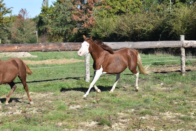 Breeding Quarter Horse PP, born in 2014 Double registered AQHA / APHA Beautiful mare with a good pedigree, she foals easily, height approximately 15.1 hh Currently in foal to a buckskin stallion by Shiners Voodoo, with a dam line featuring Topsail Whiz (visible on-site), and bred to foal in 2025 by SPOOKS GOTTA BE ICE. Broken-in, she is familiar with reining maneuvers but needs to be brought back into work. The mare is splash-colored and deaf, which does not affect her daily life. Mare = Panels 5 N/N + IMM N/IMM Foal = Panels 6 N/N Reserved as a foal at weaning for her 2025 foal: €11,000 including VAT Alternatively available in foal and bred immediately: €15,000 including VAT More photos, videos, and information available upon request. Located in Cher, FRANCE