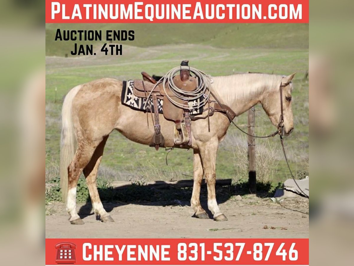 ONLINE AUCTION Place your bids at www.PlatinumEquineAuction.com Starting Bid $3500 Auction ends January 4th, 2025 Need a new saddle? Check out White Rock Saddles on our website or Facebook Cadi is a gorgeous 14.3HH palomino mare who is 12 years old and right in the prime of her life, with many great years ahead of her. She is the kind of horse that truly fits into any program and excels as a safe, dependable family mount. Cadi has been ridden by all ages and experience levels and is a horse you can genuinely trust. She has zero spook and no funny business, making her a confidence booster for beginner riders while still being responsive and enjoyable for more experienced riders. She is extremely well traveled and comfortable in a variety of environments, including high-paced roads, long and tricky trails, and everything in between. Cadi is honest and reliable, and she handles time off exceptionally well—you can pull her out after weeks or even longer and ride with confidence. She neck reins with a light touch, is very responsive to cues, and always tries to please her rider. In the arena, Cadi knows both leads, goes around nicely, collects at the poll, and has a smooth, light backup. She has pushed cows and has been exposed to many different farm animals, taking everything in stride. She has enough go to keep up with a group all day when asked, yet is relaxed and happy to slow down for an easy ride or head out alone. Cadi offers the perfect balance of forward and calm, making her suitable for multiple disciplines and riding styles. She is located in Bitterwater, CA. For more info contact Cheyenne at 831-537-8746. ONLINE AUCTION Place your bids at www.PlatinumEquineAuction.com Starting Bid $3500 Auction ends January 4th, 2025 Need a new saddle? Check out White Rock Saddles on our website or Facebook