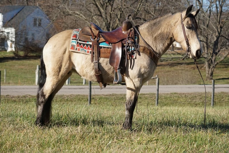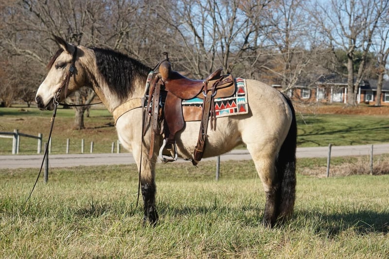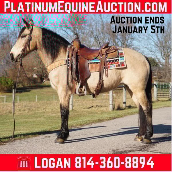 ONLINE AUCTION Place your bids at www.PlatinumEquineAuction.com Starting Bid $3500 Auction ends January 5th, 2024 Need a new saddle? Check out White Rock Saddles on our website or Facebook! Candy is a beautiful 10 YEAR OLD BUCKSKIN MARE! This BEAUTIFUL Mare stands around 14.2 Hands tall and is wide is she is tall! We have trail rode candy all over the place, she will cross the creeks and logs with ease and has been to over night camping trips! She will take both leads and is a beautiful mover and will ride English and Western! She will lead the trial ride or follow right along! She is a true doll baby to have around and is gentle for anyone to handle! This mare has been rode in the parades and she has been used in the 4H Programs and loves her job! Candy is gentle in the pasture and she can be kept up or turned out whichever one works for her new owners! She is truly a sweetheart and ready for her new home! Located in Rineyville Kentucky! For More Information call Logan Smith 814-360-8894. ONLINE AUCTION Place your bids at www.PlatinumEquineAuction.com Starting Bid $3500 Auction ends January 5th, 2024 Need a new saddle? Check out White Rock Saddles on our website or Facebook!
