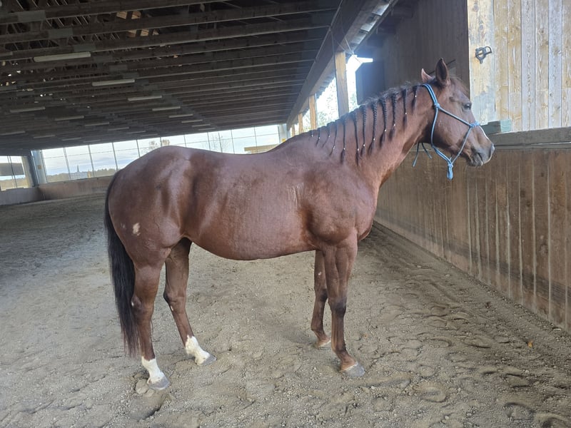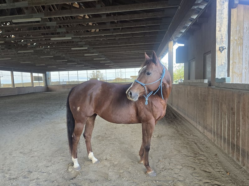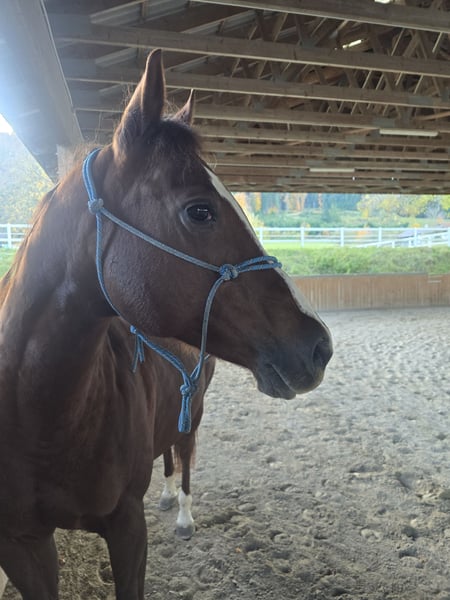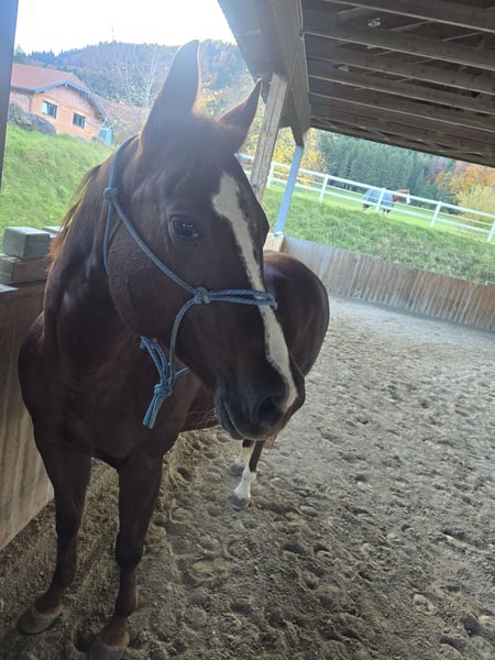Nach langer Überlegung und Herzschmerz möchte ich meine wunderhübsche Stute an einen Menschen geben der ihr mehr Sicherheit bieten kann als ich. Sie ist Freizeitmäßig geritten jedoch kein relaxtes Ausreitpferd. Sie hat furchtbare Angst vor Kühen. Sie ist sehr sensibel und braucht einen sicheren Reiter, leider bin ich da zu wenig. Sie ist kein Kinderpferd! Sie hatte 4jährig schon mal ein Fohlen. Ich wünsche,mir für sie einen tollen Endplatz mit dem Menschen der ihr Sicherheit geben kann und sie versteht und mit ihr geduldig arbeitet oder sie zur Zucht verwendet. Probereiten gegen Gebühr um Reittourismus vorzubeugen.