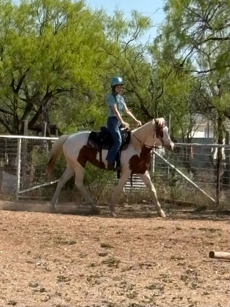 ONLINE AUCTION Place your bids at www.PlatinumEquineAuction.com Starting Bid $3500 Auction ends June 1st, 2025 Need a new saddle? Check out White Rock Saddles on our website or Facebook! Bell is a 12 yr old, 15.2H GORGEOUS sorrel and white paint mare with two icey blue eyes. She has been a lesson horse most recently, but due to the facilities relocation, they had to thin down the herd! Before that, she was a pleasure riding/trail horse for a novice family. Bell is very gentle. She’s the kind the kids love to pamper all day, brushing her hair, bathing her and loving on her. She rides very gentle, goes the speed you ask, when you ask and goes where you point her. As a lesson horse, she was used over obstacles, walking over and dragging tarps, on mini trail courses and did all the fun riding games kids can do! Bell is naturally laid back and aims to please! She’s had everyone from young first time kids on her to adult newbies too! She would be a great trail horse, lesson horse, therapy horse or perfect horse for the whole family to enjoy! She loads, leads, bathes, ties great and takes on new things with ease! Don’t miss this eye catching, gentle and safe mare! Go to her website page northtexashorsecompany.com/bell for more pictures and footage! Please call Blair with North Texas Horse Company for more info at 817-757-3046. We are located in Weatherford, TX and can help arrange affordable shipping to anyone!! ONLINE AUCTION Place your bids at www.PlatinumEquineAuction.com Starting Bid $3500 Auction ends June 1st, 2025 Need a new saddle? Check out White Rock Saddles on our website or Facebook!