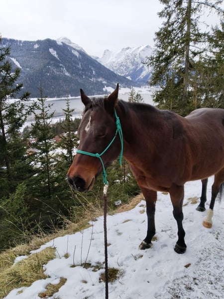 May ist eine feine ,ruhige, unerschrockene Stute. Sie geht allein ins Gelände und ist am Reitplatz ein wahrer Schatz. Sie ist ein 100% Verlasspferd. Ideal für nicht zu großs Frauen. Sie wäre auch ideal für die Zucht geeignet da sie einen fantastischen Charakter hat. Regelmäßig geimpft und entwurmt. Nur in liebevolle Hände abzugeben.