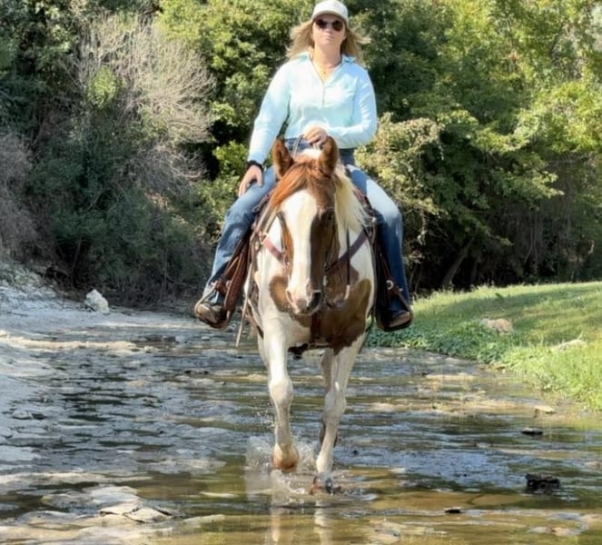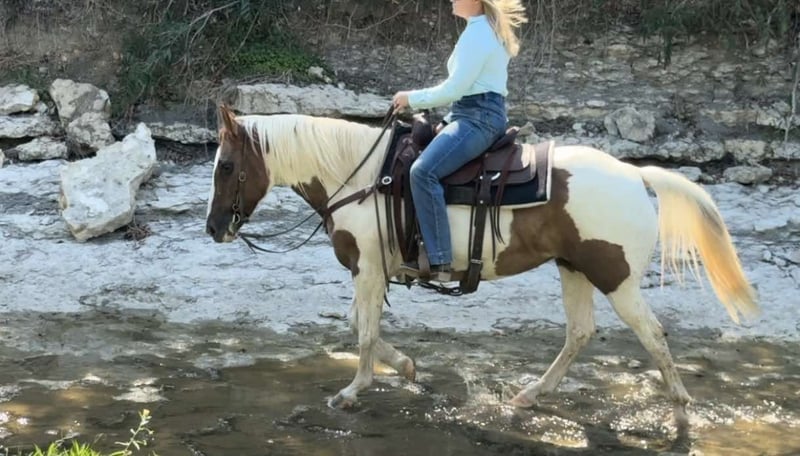ONLINE AUCTION Place your bids at www.PlatinumEquineAuction.com Starting Bid $3500 Auction ends October 27th, 2024 Need a new saddle? Check out White Rock Saddles on our website or Facebook! Bonita is a 14.2H, 12 yr old paint mare that is absolutely SAFE SAFE SAFE!!!! She was born and raised by the same family her ENTIRE life where she was used in a therapy program and for the family’s children, grandchildren, grandmas and everyone in between! The therapy program was for special needs/rehabilitation therapy. Bonita has proven time and time and time again that she is the SAFE go to mount for anyone to throughly enjoy! Sadly the program closed and they couldn’t keep them all and that’s the ONLY reason we’re able to offer her now. We promised a good friend whose uncle owned the center we’d fine her a GREAT home! This mare has it all! She’s thicker than a snicker and absolutely COMFORTABLE to ride! Bonita is easy on the eyes and will be the prettiest lady on the block. Not only is gorgeous, she’s very well broke and has everything you need to make your next beginner, lesson, therapy, or trail horse! She also would excel as a kids playday horse! One of our FAVORITE things about her is she knows how to PARK! Tap the saddle horn and tap her foot with yours and she bows/parks down for you to get on!! She rides like one should, goes exactly where you point her, neck reins, moves off leg, goes the very speed you ask and stops right when you ask her to! Bonita aims to please and never wants to do anything out of line! She has absolutely ZERO buck, bolt, rear or bad habits. She stands absolutely quiet at the trailer (with or without a buddy), loves her bathes, and leads/loads perfectly. She is absolutely NOT spooky in the slightest and has seen basically all there is to see in town and on the trails! If you’re looking for your next trail blazer, kid safe, beginner safe, lesson horse or just an easy chill horse you can kick back and crack a beer on, this is your girl! Bonita is NOT marish and has gotten along great with everyone we have. She is UTD on teeth, feet and coggins and ready for her new forever home! This mare deserves the VERY best and you’re absolutely sure to fall in love the second you lay eyes on her! Don’t miss this sweet girl that will keep your whole family begging to ride her everyday! More pics and videos on her website page at northtexashorsecompany.com/bonita Please call Blair with North Texas Horse Company for more info at 817-757-3046. We are located in Weatherford, TX and can help arrange affordable shipping to anyone!! ONLINE AUCTION Place your bids at www.PlatinumEquineAuction.com Starting Bid $3500 Auction ends October 27th, 2024 Need a new saddle? Check out White Rock Saddles on our website or Facebook!