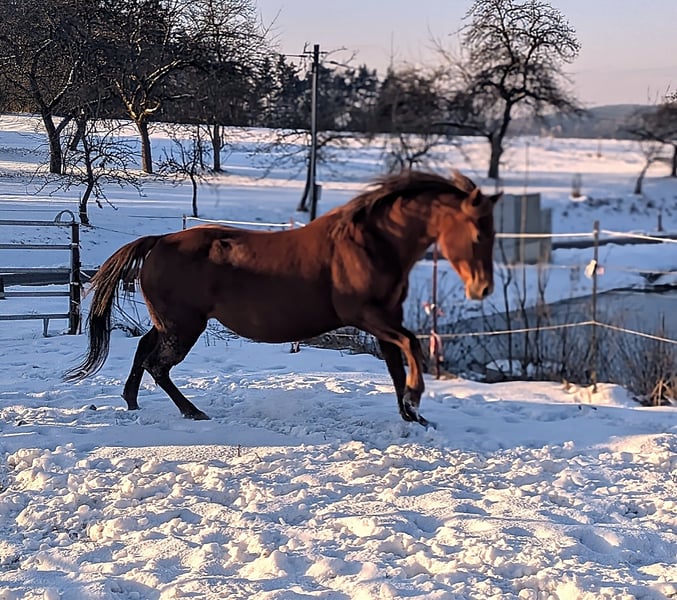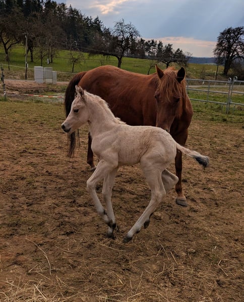 Aufgrund einer plötzlichen absoluten. Notsituation Quarterstute mit Papieren inkl. Fohlen abzugeben. Schnellstmöglich an Schnellentschlossene. Stute hatte Belastungsrehe und braucht jetzt dann Eisen oder so. Fohlen ist top gesund und kriegt Papiere. Die sind schon beantragt. Preis deswegen im Grunde rein fürs Fohlen. Die Stute wird sozusagen dazu geschenkt. Wenn ihre Hufe im Griff sind, kann sie auch noch weiter Fohlen bekommen. Eine Zweijährige von ihr steht auch bei mir. Hätte auch noch eine weitere Stute mit Fohlen bei Fuß zu verkaufen. Bedingt reitbar für Kinder z.b.