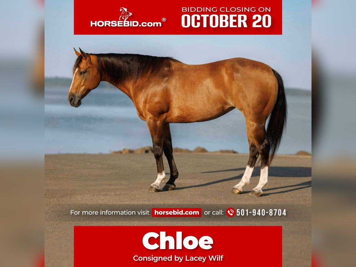 ♦️ 𝐭𝐡𝐞 𝐀𝐌𝐄𝐑𝐈𝐂𝐀𝐍 𝓕𝓪𝓵𝓵 𝓒𝓵𝓪𝓼𝓼𝓲𝓬 ♦️ Happening now thru MONDAY | OCTOBER 20th - Available EXCLUSIVELY on HorseBid's website! For more details and to register visit: www.Horsebid.com CONSIGNOR CONTACT: Lacey Wilf 501-940-8704 LOCATION: Quitman, AR BREED: AQHA REGISTERED: Yes REGISTERED NAME: Sugar Bear Foxy COLOR: Buckskin HEIGHT: 14.2 AGE: 14 GENDER: Mare Sugar Bear Foxy, known around the barn as Chloe, is a 2011 model AQHA-registered mare standing a well-balanced 14.2 hands. She’s the picture of versatility and class—steady minded, well-rounded, and always willing to please. Chloe transitions seamlessly between English and Western, moving with rhythm and softness whether she’s circling in the arena, cruising through a set of jumps, or riding out across open country. She catches both leads easily, lopes collected circles, and stays light and responsive to leg and seat cues. She’s also been around cattle and worked at the cow sale, handling the movement and commotion with quiet confidence. On the trail, Chloe is as trustworthy as they come—sure-footed, confident, and steady in any terrain. She crosses creeks, bridges, and brush without hesitation. She moves with balance and awareness, and stays calm whether leading, following, or riding out alone. She’s seen wildlife, dogs, and traffic without missing a beat, and her smooth, easy gaits make her a pleasure for long rides. Chloe is truly user-friendly in every sense. She’s patient, forgiving, and exceptionally tolerant, making her a safe, confidence-building partner for riders of any level. She adjusts easily to her rider—responsive for an experienced hand yet gentle and unbothered for a beginner. On the ground, Chloe is a complete lady—easy to catch, kind to handle, and loves attention. She stands quietly to groom, tack, bathe, and shoe, loads and hauls with ease, and stays steady in any setting. For anyone seeking a true all-around mare—just as comfortable in the arena as she is on the trail or around livestock—Chloe is the total package: dependable, versatile, and endlessly enjoyable to ride.
