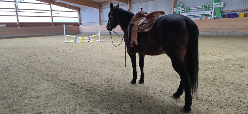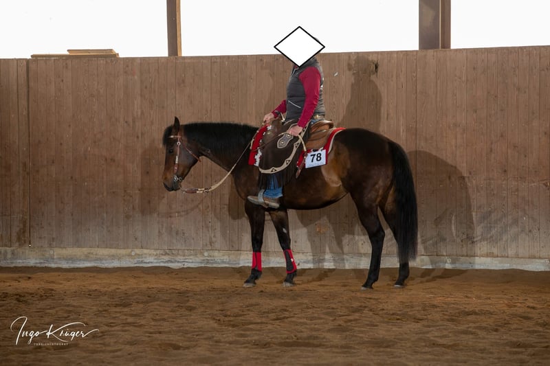 Sally ist eine hübsche, kompakte und kräftige Quarter Horse Stute, geboren 2011, mit einem Stockmaß von ca. 151 cm. Die bayfarbene Stute besitzt einen Pass, jedoch keine Papiere. Sie überzeugt vor allem durch ihren lieben, menschenbezogenen Charakter. Sally ist sensibel, sehr brav im Umgang und immer händelbar. Die Stute ist kinderlieb, kennt den Umgang mit Kindern und eignet sich daher auch sehr gut für Jugendliche. Durch ihre schnelle Auffassungsgabe lernt sie gerne und ist vielseitig einsetzbar. Aktuell lebt Sally im Offenstall in der Herde in Robusthaltung. Sie kennt jedoch auch Boxenhaltung, Weide, Wald, Wassergräben und verschiedene Alltagssituationen. In der Herde ist sie sehr verträglich und kommt auch mit Wallachen problemlos klar. Zudem ist sie leichtfuttrig und kann auch jederzeit alleine bleiben. Gesundheitlich steht sie gut da. Sally ist regelmäßig geimpft und entwurmt. Zurzeit läuft sie barhuf, im Gelände wird sie mit Hufschuhen geritten. Sie ist geländesicher, kennt Ralleys und lässt sich in wenigen Sekunden verladen. Sally besitzt eine sehr gute Westernausbildung in Richtung Allround, insbesondere in Ranch Riding und Ranch Rail. Sie wurde bereits erfolgreich geshowt und zeigt sich auch auf Turnieren ruhig und unkompliziert. Zusätzlich war sie fünf Monate im Profitraining und hat fortlaufend Unterricht erhalten. Mit ihren guten Bewegungen, ihrem ausgeglichenen Wesen und ihrer Vielseitigkeit ist Sally die ideale Partnerin für ambitionierte Freizeitreiter, die Abwechslung im Sattel schätzen. Gleichzeitig ist sie auch eine tolle Wahl für Jugendliche, die ein zuverlässiges und gut ausgebildetes Pferd suchen.