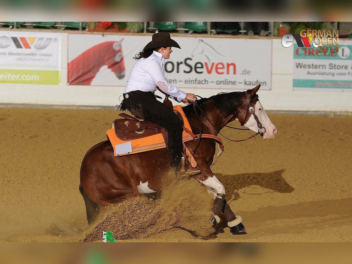 Ich suche ein neues wundervolles Zuhause für meine Stute Leah. Ich habe sie im Winter 2011 aus den USA importiert und seither befindet sie sich in meinem Besitz. Leah wurde erfolgreich in Reinung vorgestellt. Sie hat einen guten stop und dreht sehr gut. Des Weiteren wurde sie in Trail und Western Riding vorgestellt. Aktuell ist sie für Mai von Hollys Electricspark tragend. Bisher hatte sie zwei Fohlen (beide letzten Bilder). Ihre Tochter Amy befindet sich in meinem Besitz und ist ebenfalls ein super Manöverstarkes Pferd. Amy wurde 4 jährig 3. in der Jungpferde Reining und Vize Champion in der Junior Reining auf der German Open. Ich gebe Leah nur in nachweislich die allerbesten Hände ab.