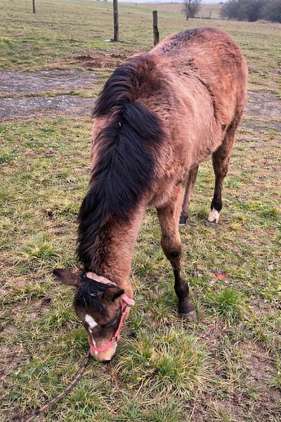 💥 LILLY RUF DUN IT💥 Superbe pouliche Quarter Horse PP de 8 mois de robe Buckskin (Isabelle) bien dans sa tête et proche de l’homme. ✨ Très sociable, elle recherche naturellement le contact humain. ✨ Se laisse manipuler facilement (donne les pieds, accepte le licol, marche en main). ✨ Poulain bien éduqué pour son âge, respectueuse et curieuse. 🩺 À jour : ✔️ Vaccins ✔️ Pucée ✔️ Vermifugée 6 panels N/N (tests fait) Par Shining Bliss CT (Lil Ruf Peppy) et Boogies Dun It NAHR (Boogies Flashy Jac) 📏 Taille estimée : 1,48m 📍 Visible à l’élevage – Petit-Réderching (Moselle) 📸 Photos et vidéos disponibles sur demande Wunderschöne 8 Monate alte Quarter Horse Stute mit vollen Papieren (PP), in der Farbe Buckskin (Isabell), ausgeglichen und sehr menschenbezogen. ✨ Sehr sozial, sucht von Natur aus den Kontakt zum Menschen. ✨ Lässt sich problemlos händeln (gibt die Hufe, akzeptiert das Halfter, lässt sich am Strick führen). ✨ Für ihr Alter gut erzogen, respektvoll und neugierig. 🩺 Auf dem neuesten Stand: ✔️ Geimpft ✔️ Gechipt ✔️ Entwurmt 6 Panels N/N (Tests durchgeführt) Von Shining Bliss CT (Lil Ruf Peppy) und Boogies Dun It NAHR (Boogies Flashy Jac) 📏 Geschätztes Endmaß: 1,48 m 📍 Sichtbar in der Zucht – Petit-Réderching (Moselle)