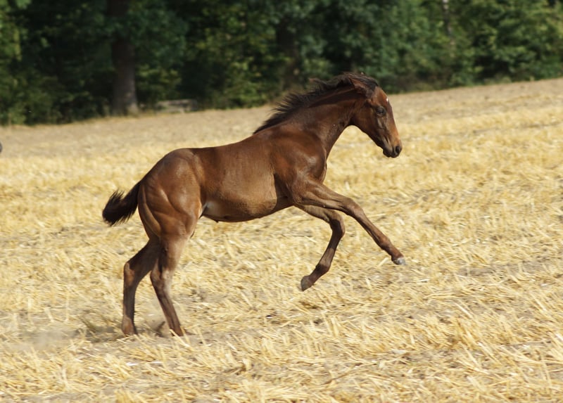 Jacs Electric Smoke alias Lucie est une magnifique pouliche mare issue du célèbre étalon américain de reining A Vintage Smoke, née d’une mère Jacs Electric Spark / Hollywood Dunit. Elle possède une conformation très correcte, des membres droits, une belle ligne du dessus et une carrure solide. Les mouvements de Lucie sont très athlétiques, et elle montre de manière ludique beaucoup de talent pour les stops, les pirouettes et les changements de galop. Lors de la foal show à Wenden, elle a obtenu une note globale de 82,36 % !!! Père : A Vintage Smoke Mère : Dun It In Sparkles, par Jacs Electric Spark / Hollywood Dunit Test génétique : 5 Panel N/N, IMM N/N. *2025 Nos poulains grandissent en troupeau avec leur groupe de naissance, sont régulièrement vermifugés et présentés au maréchal-ferrant. Plus d’informations sur www.brallentin-quarterhorse.de