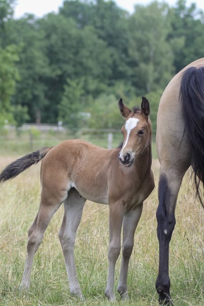 Sweety - bezaubernde Quarter Horse Stute, 2025 geboren mit einem Endmaß von 148 bis 150 cm, mit interessanter Abstammung. Sie überzeugt durch ihr korrektes Gebäude, ihre ausgewogene Bemuskelung und ihren Charakter. Sie wächst in einer kleinen Stuten- und Fohlengruppe auf großen Flächen auf, ist gut sozialisiert und kennt Tierarzt sowie Hufschmied. Bei Abgabe ist sie altersgemäß geimpft und entwurmt. Ihr sanftes, freundliches Wesen macht Sweety sehr liebenswert. Sie ist sehr menschenbezogen, verschmust, neugierig, offen und interessiert. Das Jungpferd ist leicht im Handling, gelassen und lernwillig - ideal für alle, die ein zuverlässiges und angenehmes Pferd suchen. Ihre Bewegungen, ihr Charakter und ihr Gebäude überzeugen auf ganzer Linie. Hancock meets Cowhorse - ein gelungener Outcross, der wirklich überzeugt. Sie ist geeignet für Sport, Turnier und Freizeit und wird mit AQHA-Papieren sowie einer klinischen AKU, die im Rahmen des Verkaufs von der Züchterin in Auftrag gegeben wird, abgegeben. Sie wird ein solides Ranch-Pferd werden.