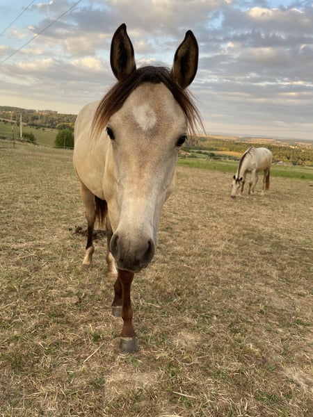 ✨ Ezras Macy Snocks – junge Stute mit Herz & Verstand sucht ihr neues Zuhause ✨ Macy ist eine 2024 geborene Dunskin-Roan-Stute (Endmaß ca. 150 cm) und wächst seit Tag 1 im Herdenverband auf. Sie ist ein absoluter Schatz im Umgang – freundlich, neugierig, mutig und sehr menschenbezogen. 🧡 Von klein auf begleitet sie Ausritte als Handpferd und zeigt sich dabei immer super unerschrocken und gelassen. Sie bringt ein tolles, ausgewogenes Fundament mit, weiche Bewegungen und eine wunderschöne Sonderfarbe. 🦄 Macy im Überblick: • geb. 2024 • ca. 150 cm Endmaß • Farbe: Dunskin Roan • Halfterführig & brav beim Schmied • Regelmäßig entwurmt und geimpft • Von klein auf mit draußen gewesen (Handpferde-Ausritte) • Mutig, unerschrocken, neugierig • Ruhig, gelassen, sozial & ausgeglichen • Wunderschönes Gebäude & Sonderfarbe 📌 Abstammung: • Mama: Honey Soulmate – Suffield Mustang • Papa: MJM Saltys Blue Ezra Macy eignet sich wunderbar für den ambitionierten Freizeitreiter oder Amateursportler, der ein junges Pferd solide ausbilden und gemeinsam wachsen möchte. Sie bringt die Coolness, das Fundament und die Einstellung mit, um später ein vielseitiger, verlässlicher Partner zu werden – ob im Gelände, auf Kursen oder kleinen Turnieren. 🌿 Sie liebt Menschen, kommt immer freudig ans Tor und ist in jeder Hinsicht ein ehrliches, unkompliziertes Pferd, das ihrem Menschen sicher viel Freude machen wird. 💛 Bei ernsthaftem Interesse oder Fragen zu Macy melde dich gerne bei mir!