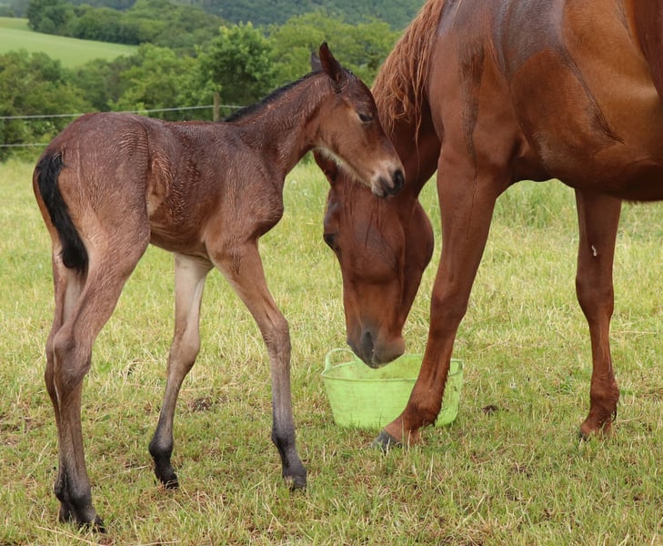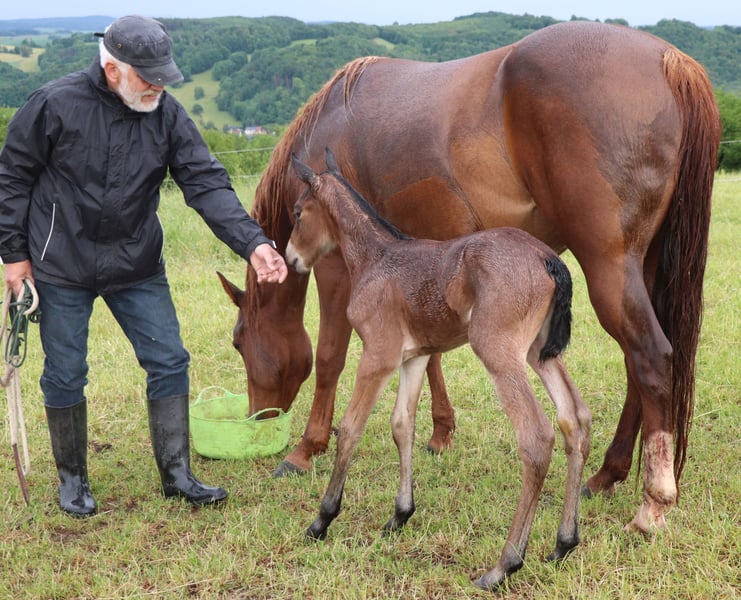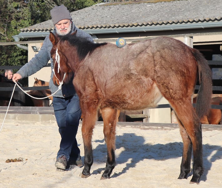 VALENTINA est très typée, bien construite et proche des humains. Elle deviendra un partenaire très fiable pour la vie pour le cavalier de loisir ou de compétition ambitieux. VALENTINA est éligible pour la DQHA & les régions-Futurity. Elle est préparée avec soin par nos soins aux méthodes de l'Natural Horsemanship pour sa future vie. Elle profite de sa vie en stabulation libre dans un grand pré au sein d'un troupeau mixte. Sous le bouton "Protocole d'entraînement", vous trouverez son niveau de formation actuel.
